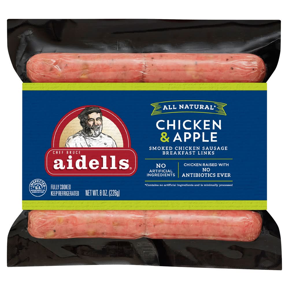 Start your morning off right with Aidells Chicken & Apple Smoked Chicken Sausage Breakfast Links. Washington State Farm apples combine with all-natural hardwood smoked chicken for the perfect balance of sweet and savory. Simply pair with eggs and toast for breakfast or serve on a toasted roll with caramelized onions and spicy mustard for lunch. Our Chicken & Apple Breakfast Sausage is gluten-free and has no added nitrites, except for those naturally occurring in celery powder. For over 30 years, Aidells chicken sausages have been handcrafted in small batches with care using only the freshest, most flavorful ingredients we can find. Our all-natural sausages are stuffed by hand in natural casings with no fillers or binders and slow-smoked for hours over real hardwood chips for that snap we love. Though Aidells has grown over the years, we still believe in doing things the way we always have: with extraordinary care and passion. Minimally processed, no artificial ingredients.