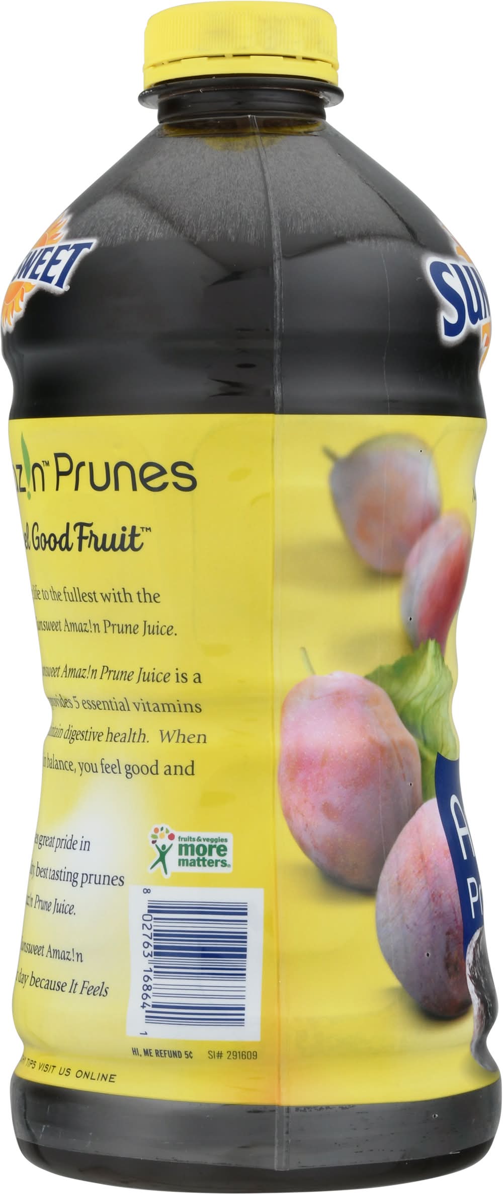 A water extract of dried prunes. 4 grams fiber per serving. Prunes/Prune Juice is a gluten free food. Good source of fiber, B vitamins, potassium naturally. Natural digestive health. 5 Essential vitamins and minerals. The Feel Good Fruit. Enjoy living life to the fullest with the nutrition of Sunsweet Amazin Prune Juice. Each serving of Sunsweet Amazin Prune Juice is a good source of fiber and provides 5 essentials vitamins and minerals to help maintain digestive health. When your digestive system is in balance, you feel good and perform at your best. Our family of farmers takes great pride in growing the highest quality, best tasting prunes that go into Sunsweet Amazin Prune Juice. So go ahead and make Sunsweet Amazin Prune Juice in a part of your day because it feels good to feel good. Consumers' no. 1 choice. Taste & quality Sunsweet Growers, Inc., Yuba City,CA