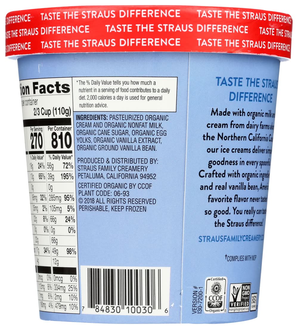 Straus Family Creamery Organic Super Premium Ice Cream, Vanilla Bean (1 pint)