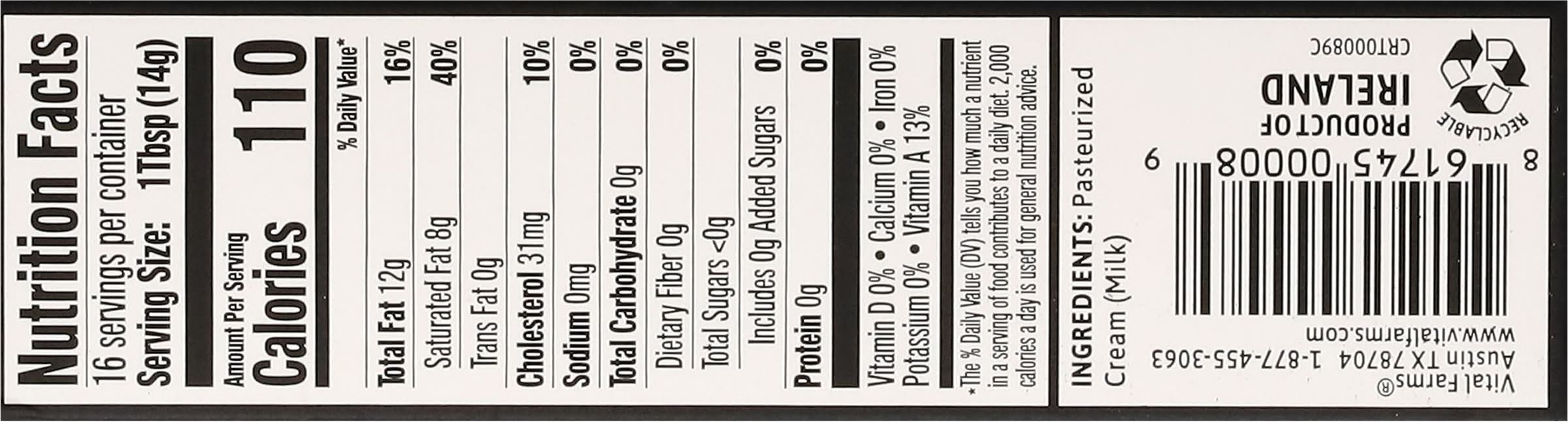 Ingredients: Pasteurized Cream (Milk) Contains: Milk