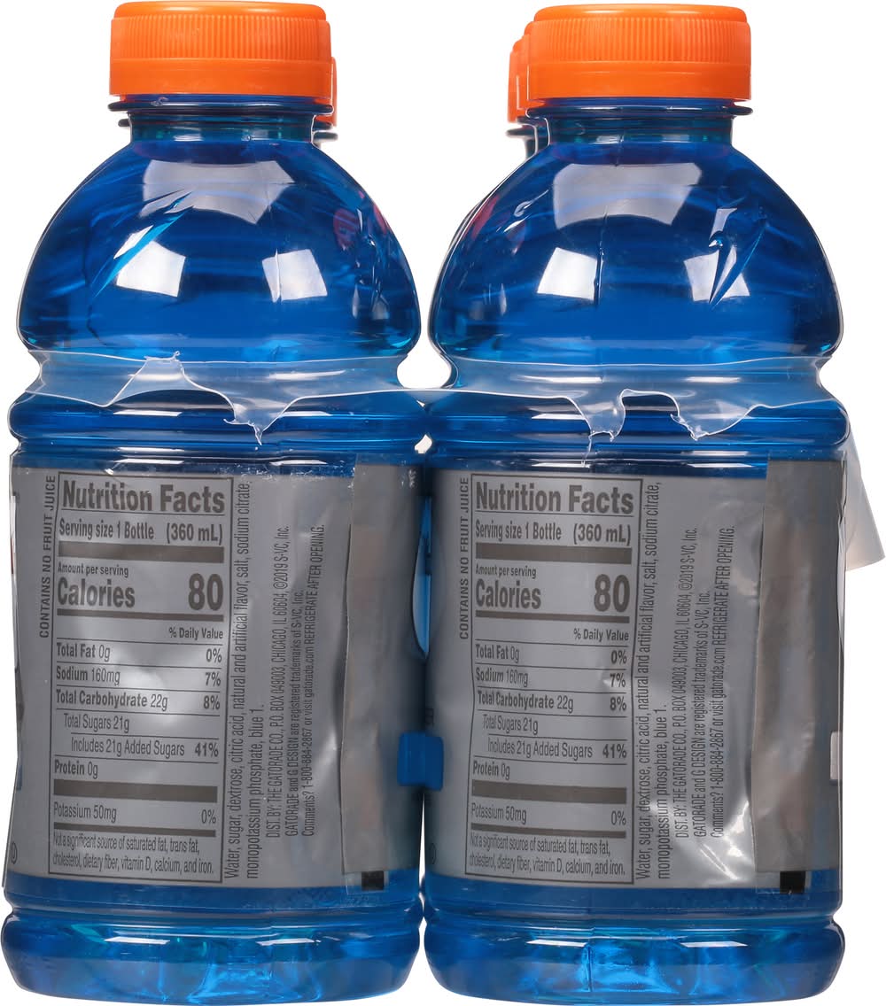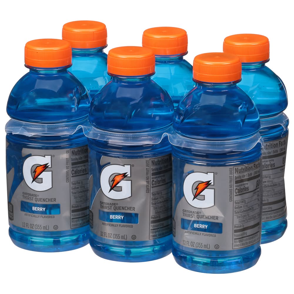 With a legacy over 40 years in the making, Gatorade brings the most scientifically researched and game-tested ways to hydrate, recover, and fuel up, which is why our products are trusted by some of the world's best athletes. • Flavor: Berry • Pack size: 6 • The Gatorade Co., Po. Box 049003,Chicago,IL,60604 • Packaging: Reusable