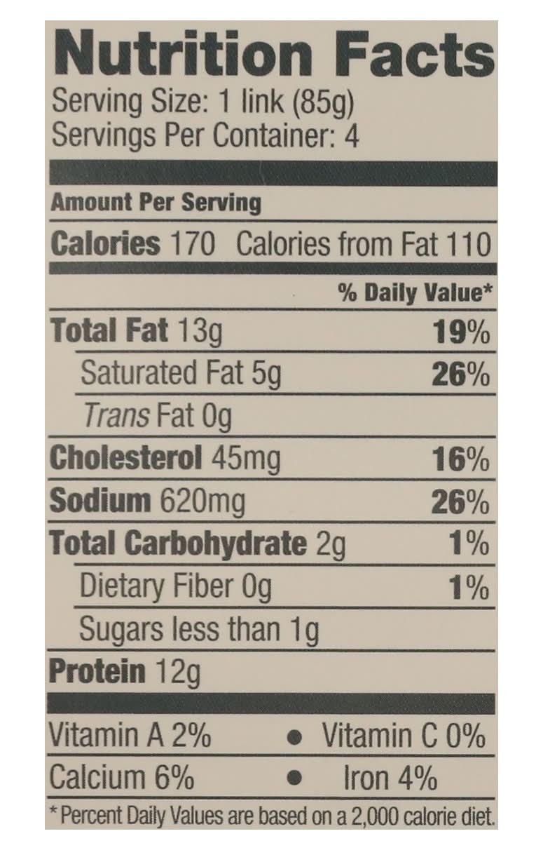 Smoked Sausage, Jalapeno Pepper Jack Number of servings: 4