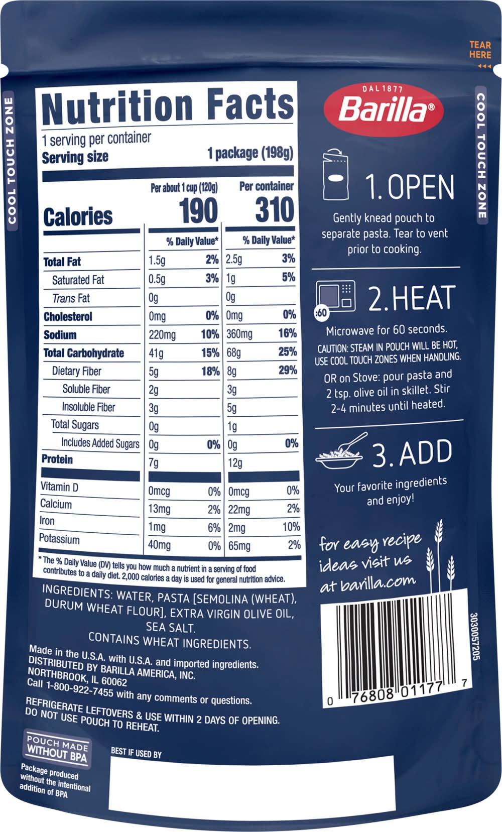 Ingredients: Water, Pasta [Semolina (Wheat), Durum Wheat Flour], Extra Virgin Olive Oil, Sea Salt Contains: Wheat