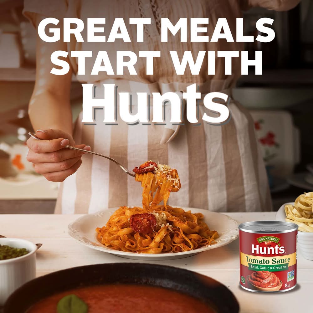 Get cooking with Hunt’s Tomato Sauce with Basil, Garlic and Oregano. Made with all-natural, vine-ripened tomatoes simmered with a rich Italian seasoning blend, this tomato sauce is a flavorful addition to any recipe. From soups, glazes, pizza sauces and pasta sauces, Hunt's Tomato Sauce with Basil, Garlic and Oregano is a trusted start to easy and delicious meals. 100% natural, this tomato pasta sauce is Non-GMO Project Verified and contains no added sugar, corn syrup or other sweeteners. with no artificial preservatives or ingredients, you can trust this red sauce as an ideal way to elevate meals for your family. Use this smooth tomato sauce in casseroles, soups or as a spaghetti sauce. Ready when you need it, this canned tomato sauce is a pantry staple. Keep it on hand for canned goods with delicious flavor. Great meals start with Hunt’s​.