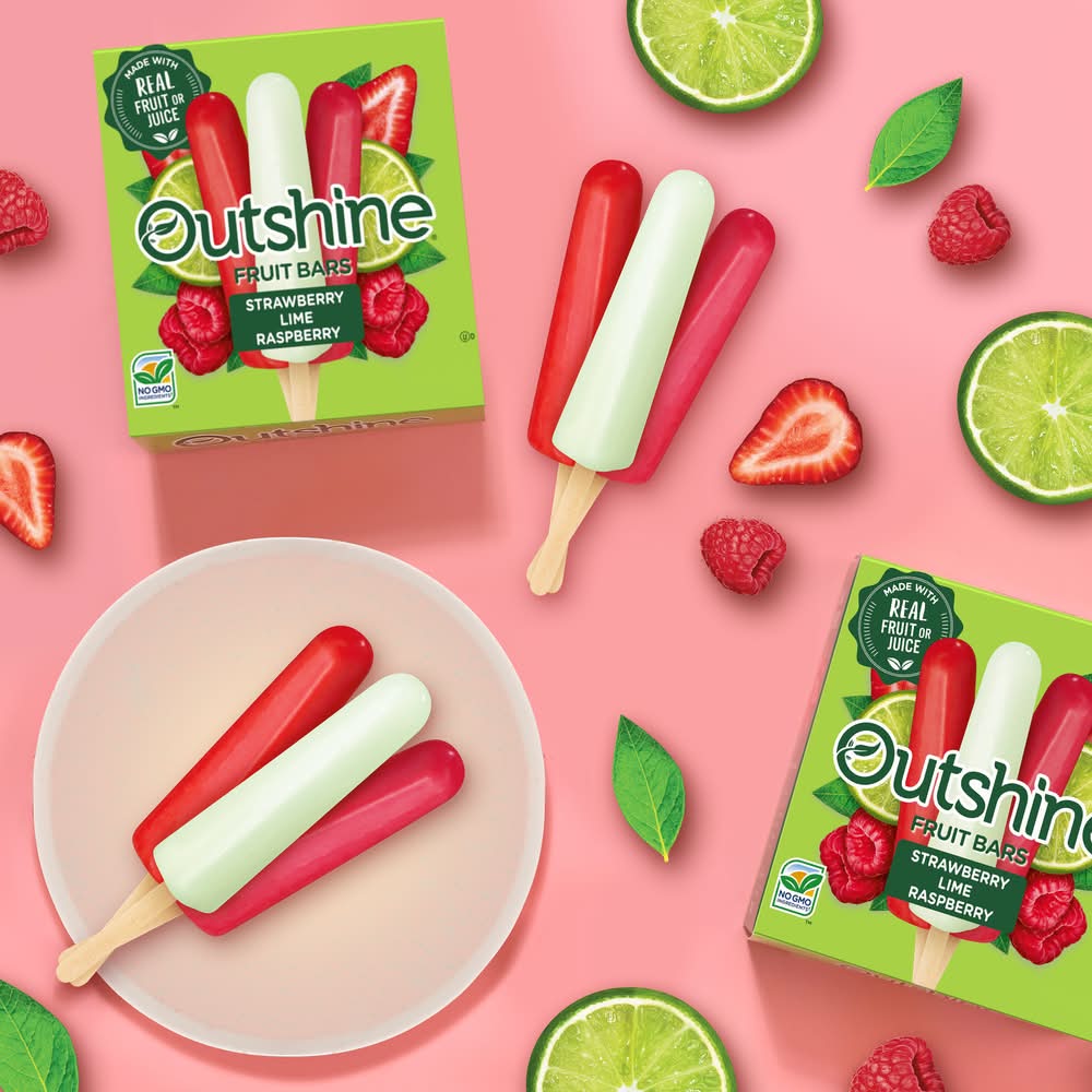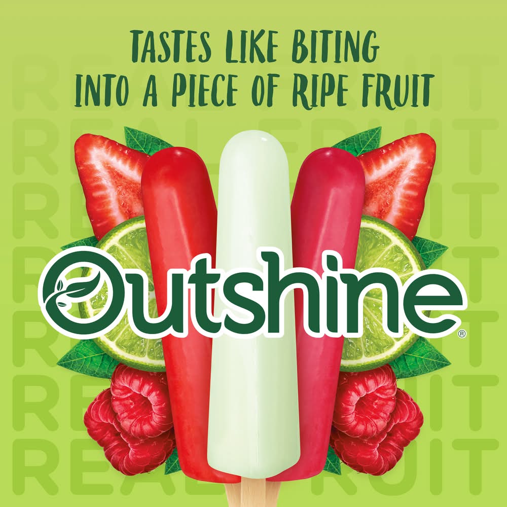 Enjoy the bold, deliciously fun taste of Outshine Strawberry, Lime, and Raspberry Frozen Fruit Pops. Made with real fruit or fruit juice, these freezer pops bring the vibrancy of strawberry, raspberry, and lime to energize your day. Outshine Frozen Fruit Pops are a wholesome snack you and your family can enjoy without compromise, with no high fructose corn syrup, no GMO ingredients, and no artificial colors or flavors. Refreshing and nutritious, they are fat-free and gluten-free snacks. Try the whole range of Outshine Frozen Fruit Bars to find your new favorite summertime snack or after-dinner delight. Choose from fruit bars, fruit bars with no sugar added, variety packs, and more. You can even mix and match your favorite Outshine Fruit Bars in a blender (remember to remove the sticks to make deliciously refreshing mocktails that are sure to cool down any hot afternoon. With more than a dozen real fruit flavors to choose from including creamy coconut, strawberry, pineapple, grape, and more, the possibilities are endless! Packaging: Reusable