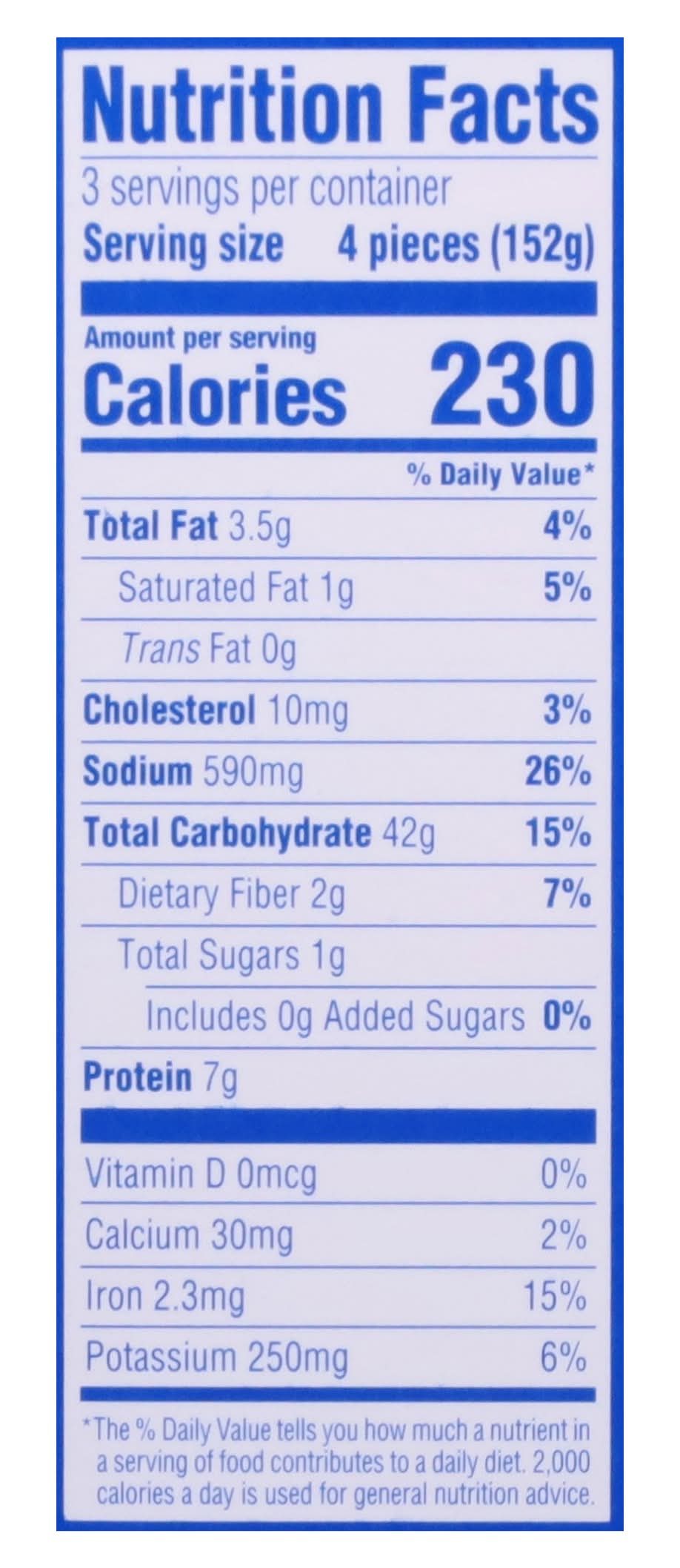 Ingredients: Water, Enriched Flour (Wheat Flour Niacin Reduced Iron Thiamine Mononitrate Riboflavin Folic Acid), Potato Flakes (Potatoes Mono and Diglycerides Sodium Acid Pyrophosphate Citric Acid [Preserves Color]), Soybean Oil, Dehydrated Cheddar Cheese (Cheddar Cheese [Pasteurized Milk Cheese Cultures Salt Enzymes] Disodium Phosphate), Salt, Onion, Natural Flavor, Eggs, Yeast Extract, Whey, Spice, Annatto and Turmeric (Color) Contains: Wheat, Soybeans, Milk, Eggs