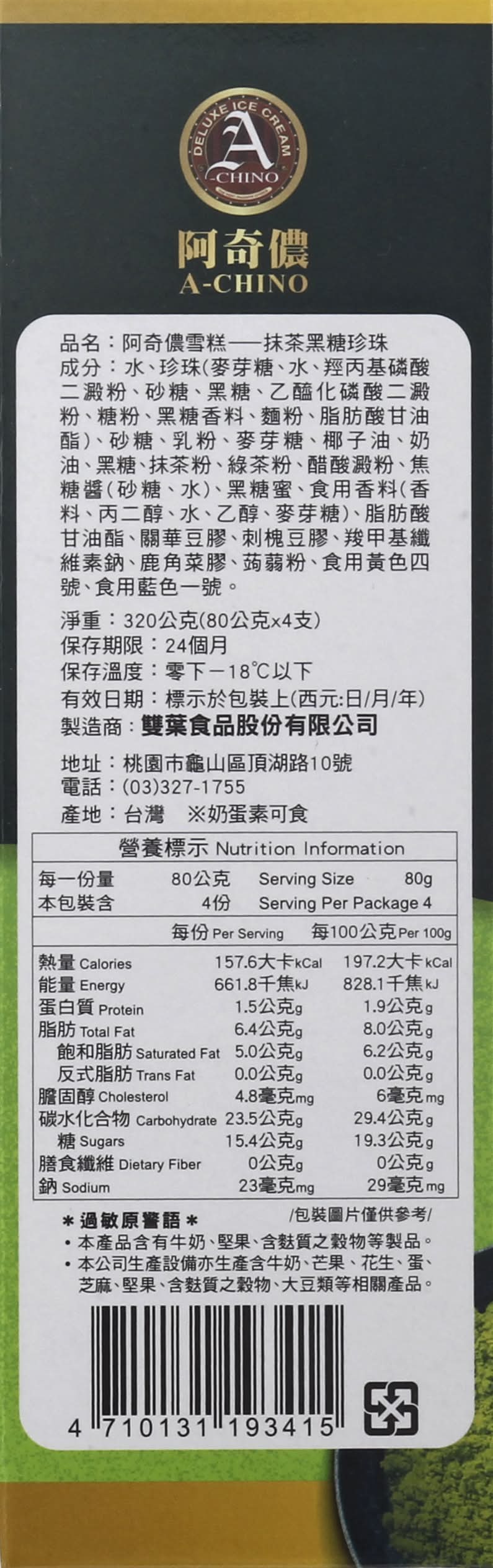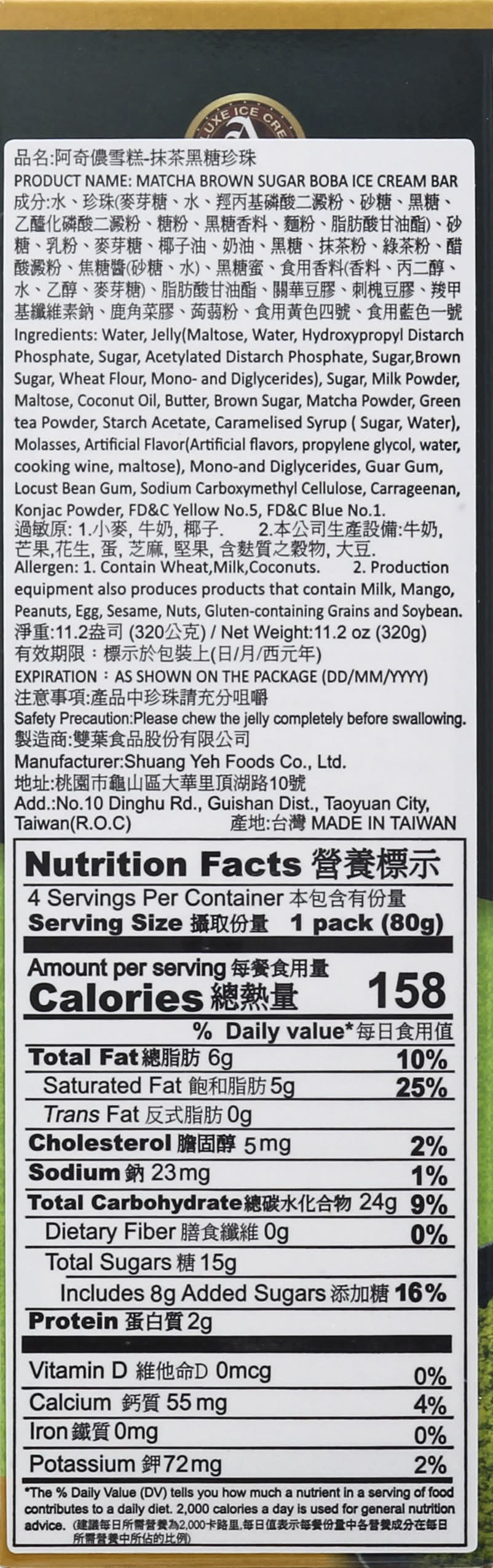 Deluxe ice cream. Made in Taiwan. Shuang Yeh Foods Co., Ltd., No 10 Dinghu Rd Guishan Dist, Taoyuan, Taiwan