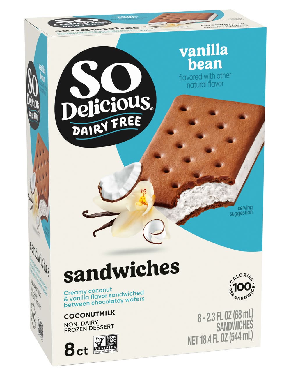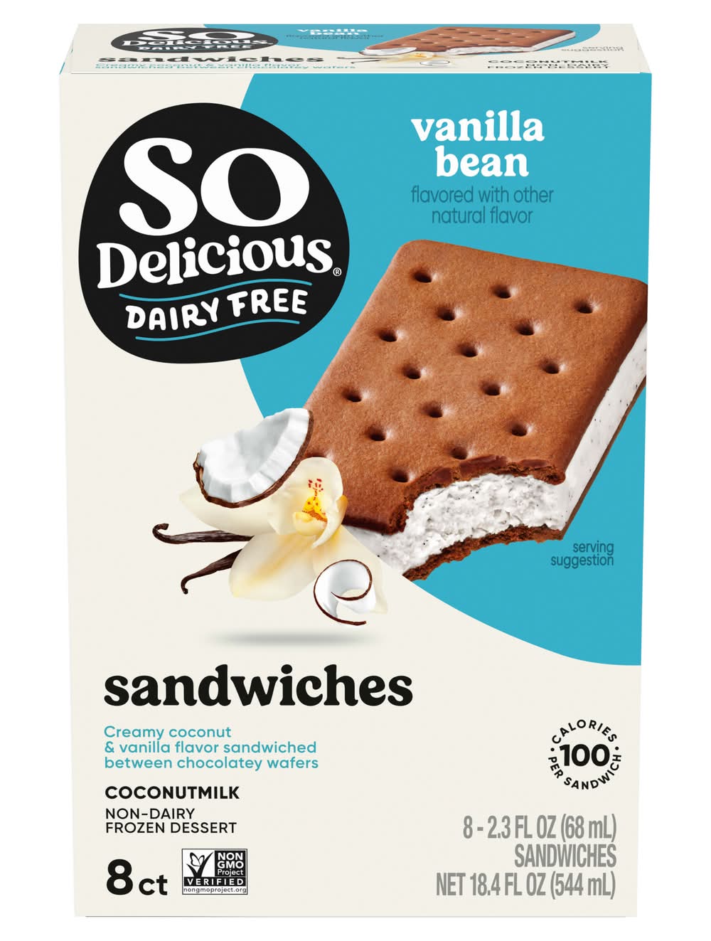 So Delicious Ice Cream Sandwiches, Vanilla Bean Coconutmilk (2.3 fl oz, 8 ct)