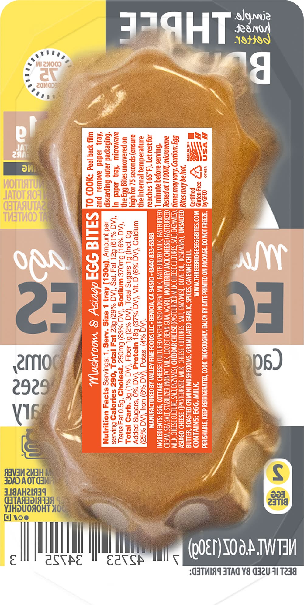 Three Bridges Mushroom & Asiago Egg Bites (4.6 oz, 2 ct)