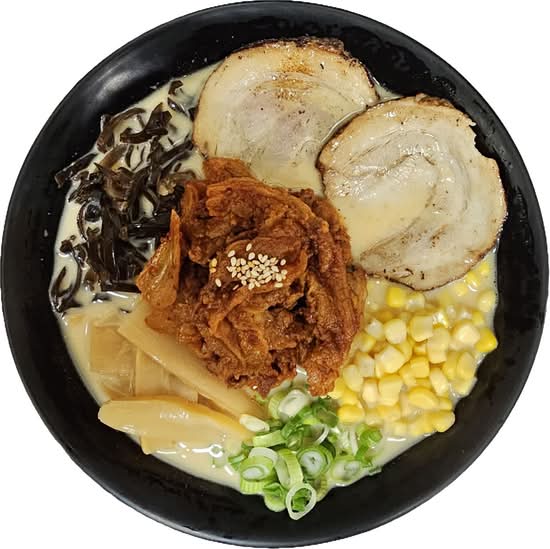 Choose your meat (spicy pork, shoyu pork, premium chicken, and Japanese beef + $1) chashu 2 pieces, menma, mushroom, green onion, and sweet corn.