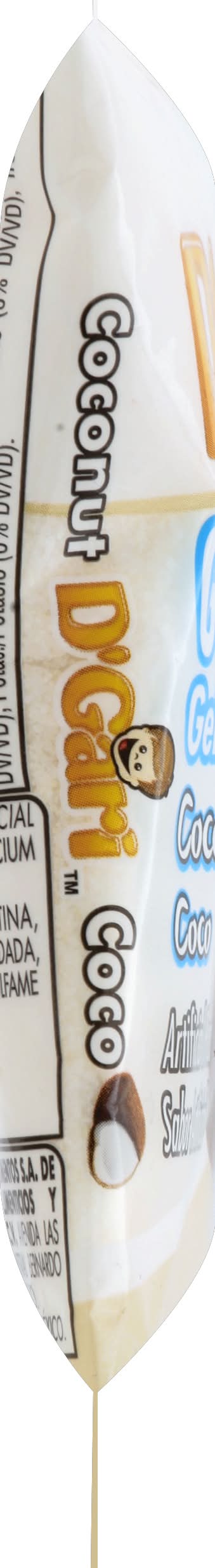 Ingredients: Sugar, Gelatin, Artificial Coconut Flavor, Salt, Sucralose, Calcium Phosphate and Acesulfame Potassium Contains: Tree Nuts