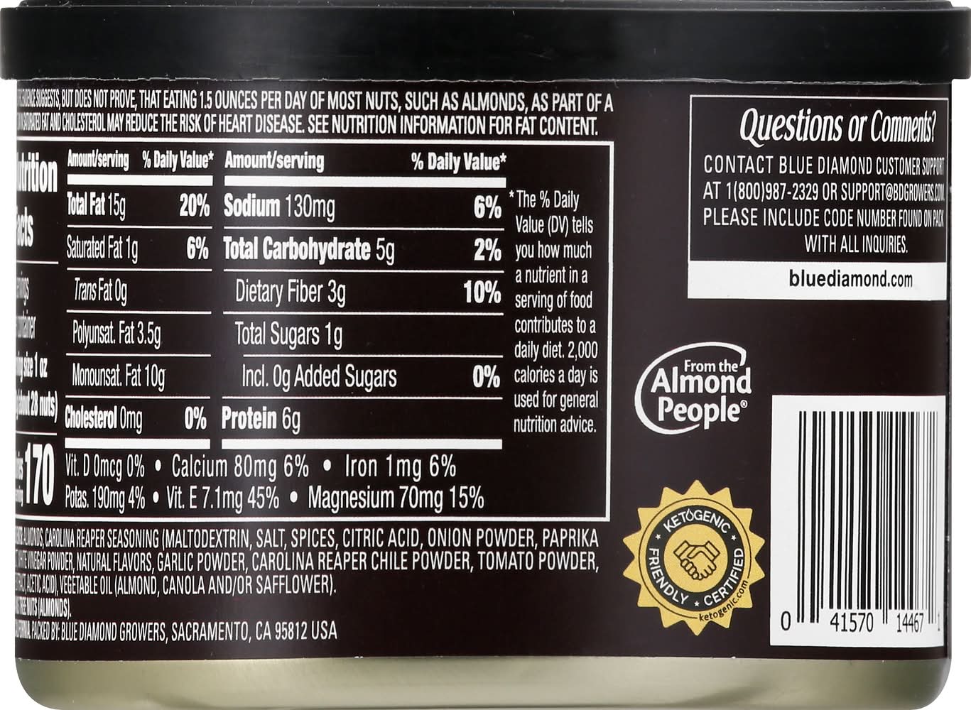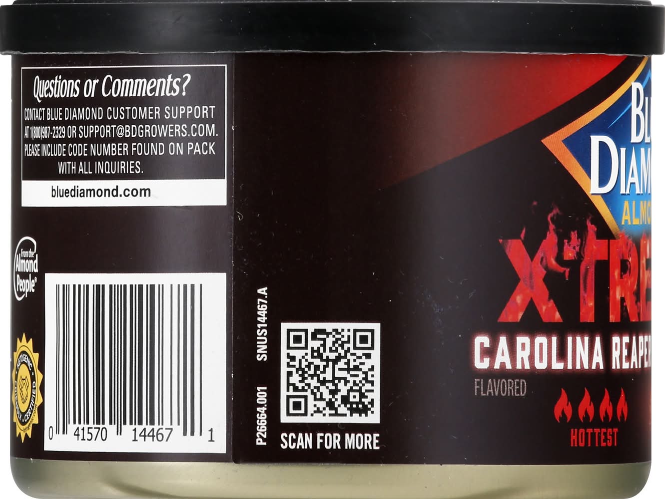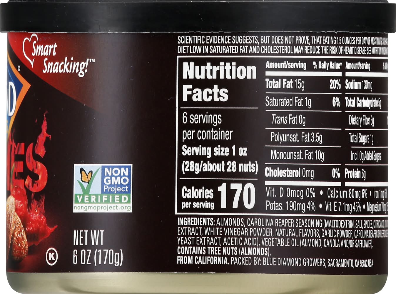 Almonds, Hottest, Carolina Reaper Blue Diamond Growers, Sacramento, CA 95812.