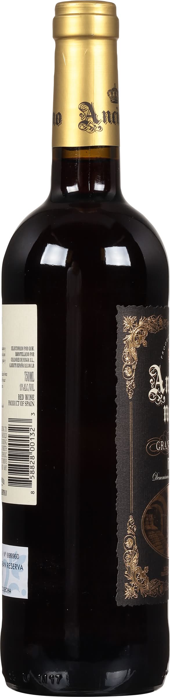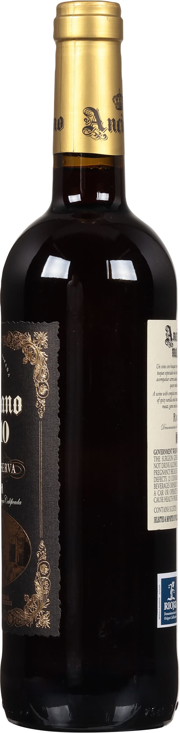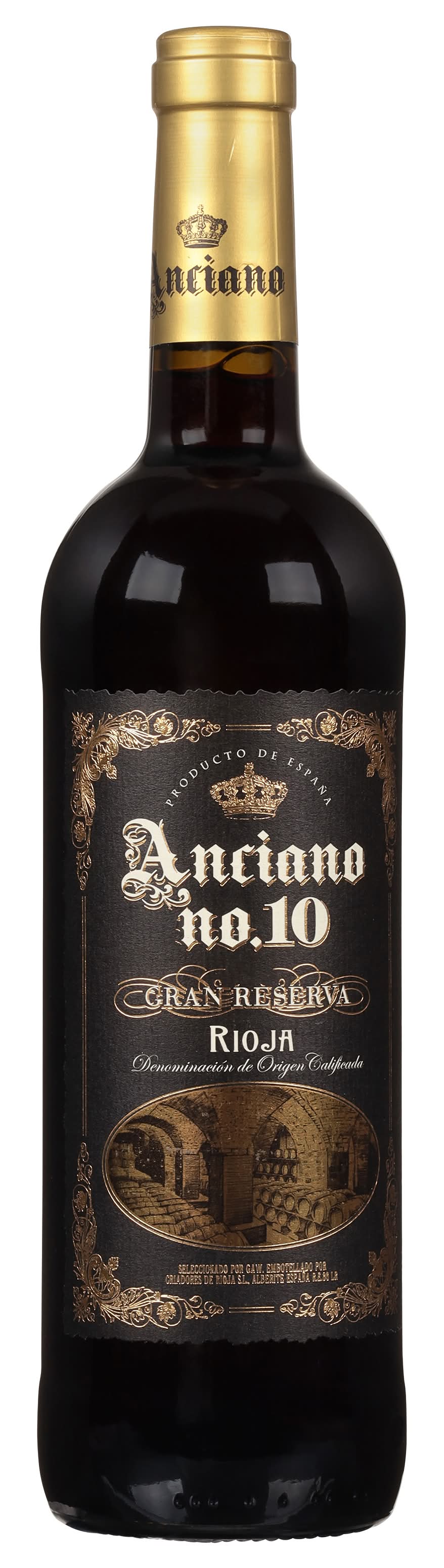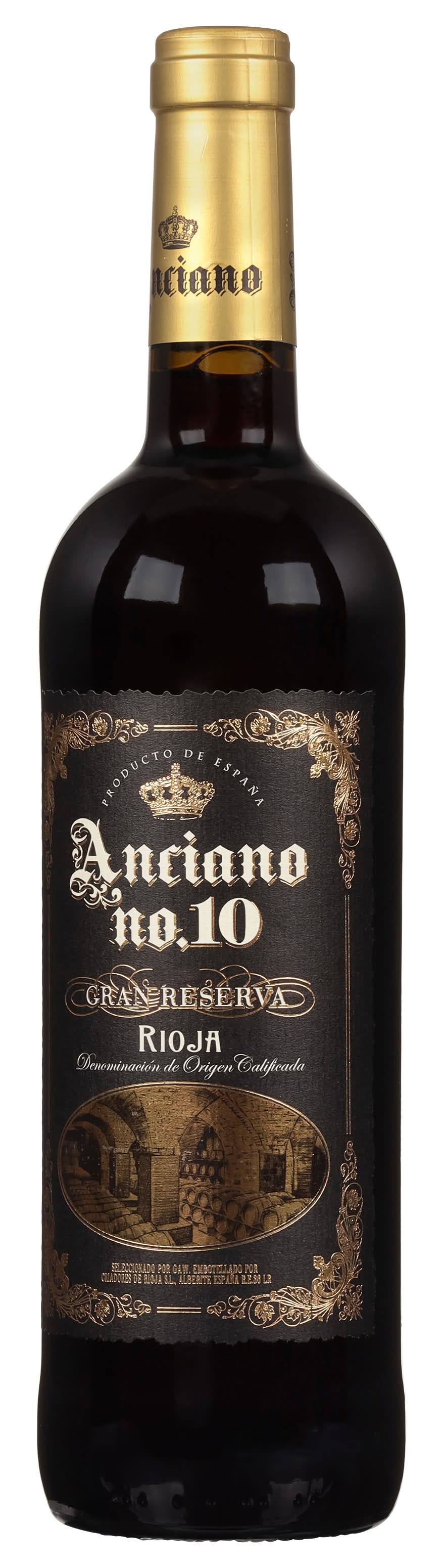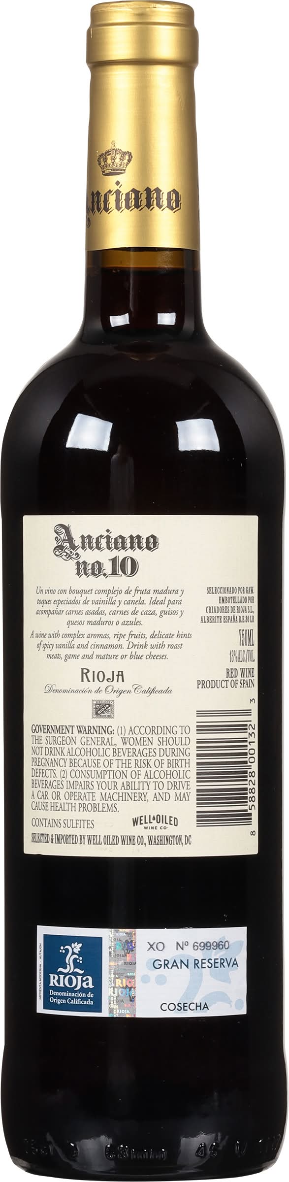 Rioja, Gran Reserva • Brand: Anciano • Alcohol by volume: 13% • Medium bodied • Sweet-dry scale: dry • Food pairing: tomatoes, cured meats • Suggested serving temperature: 60° F • Suggested glassware: standard red glass