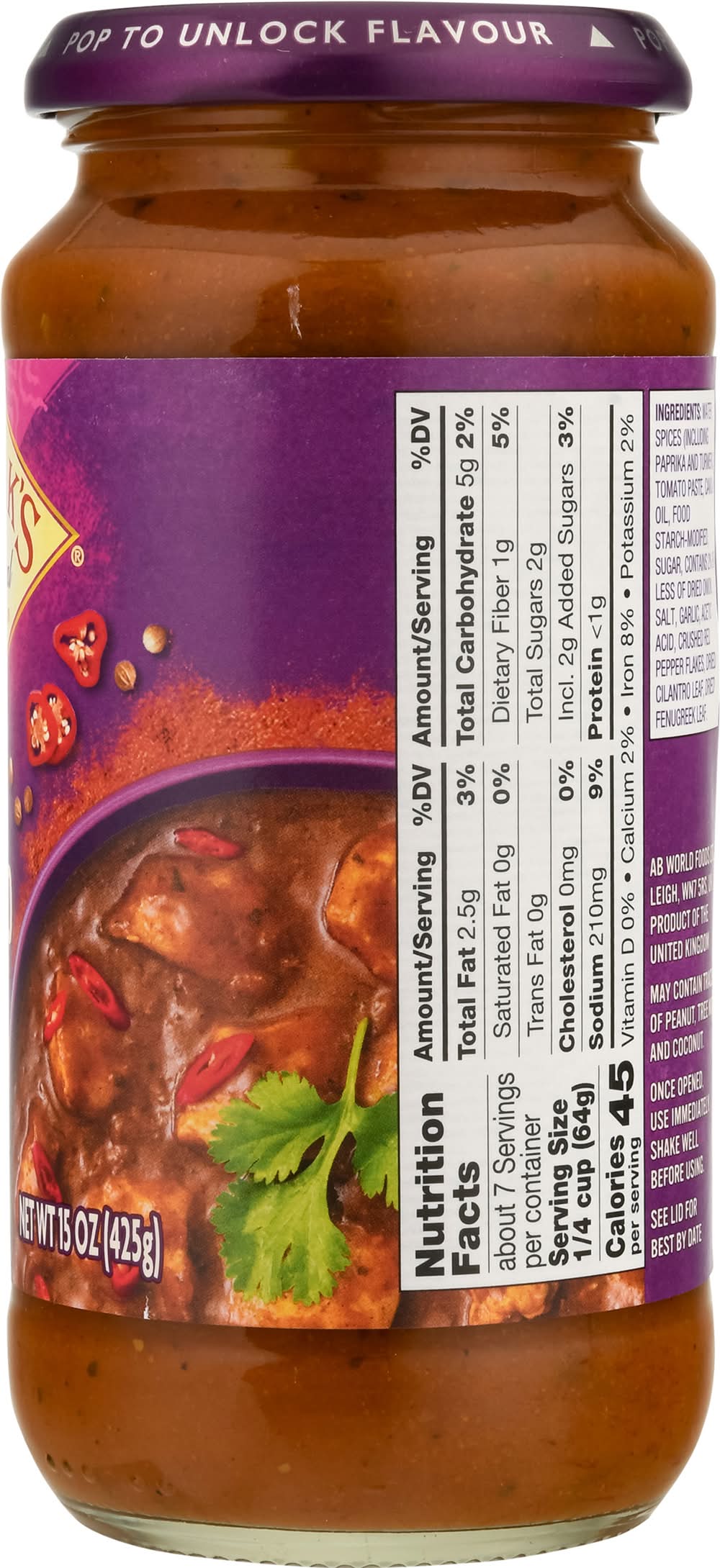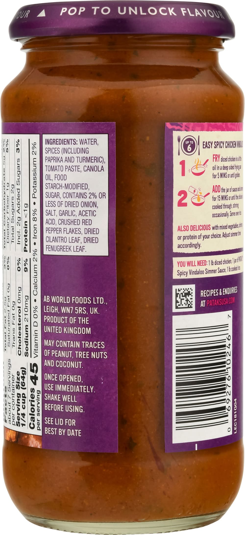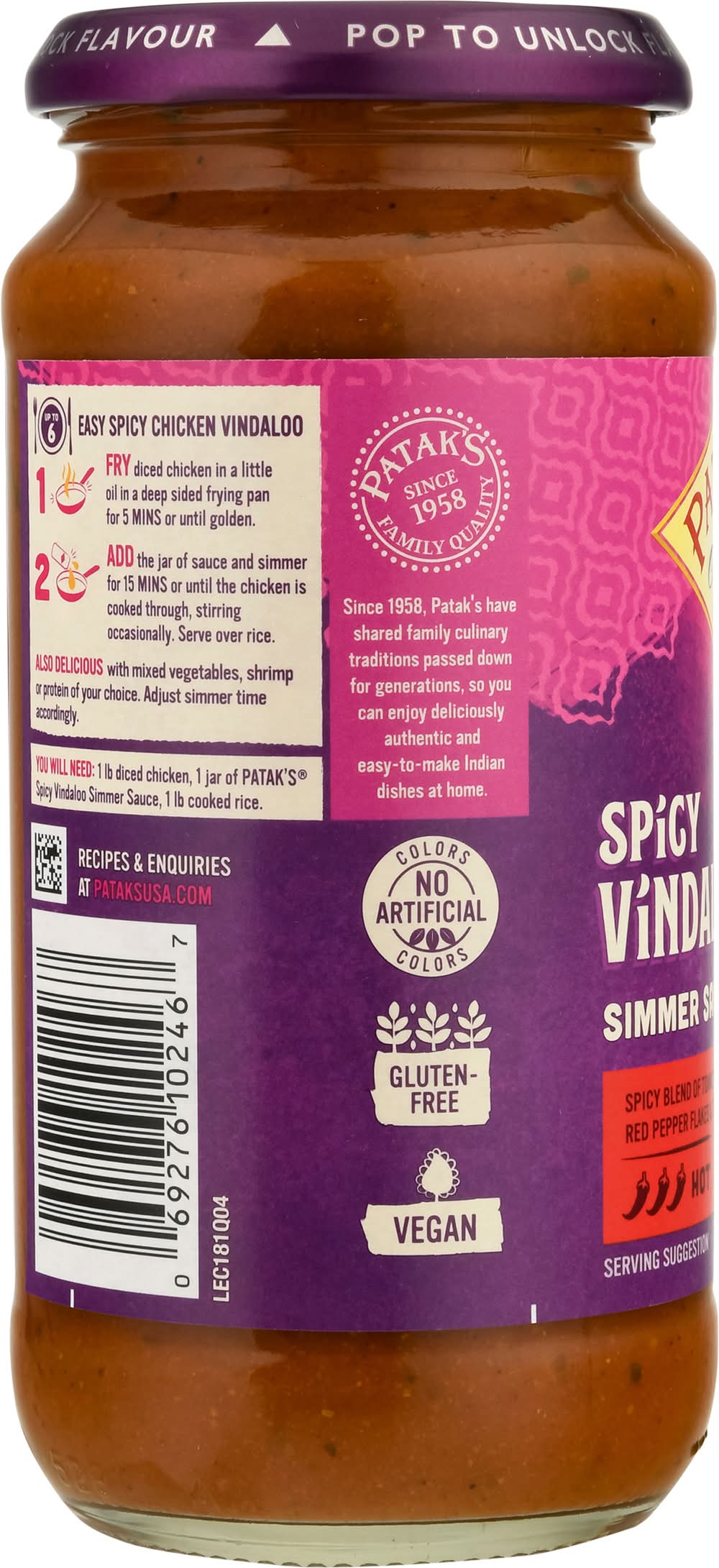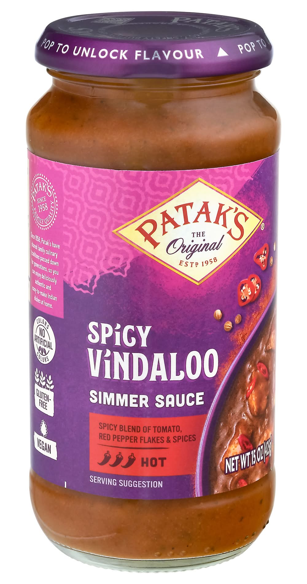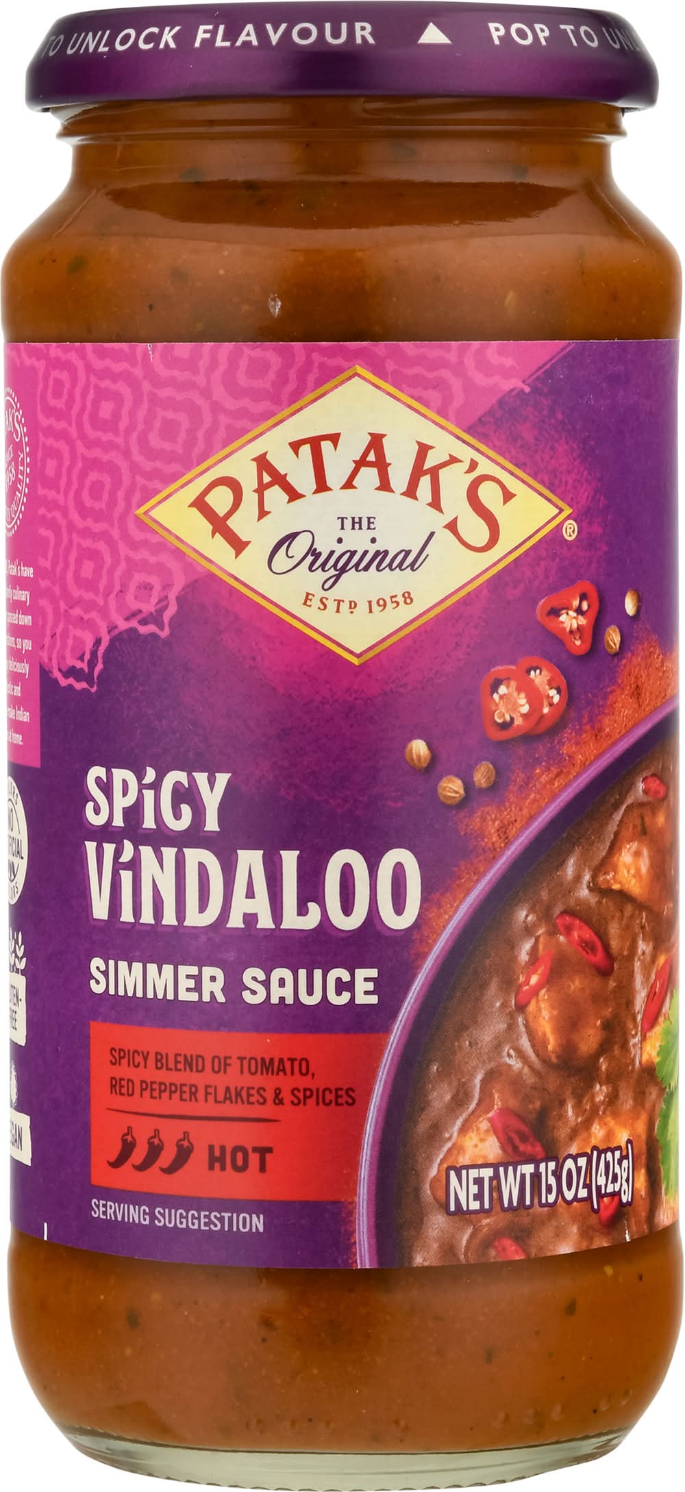 Patak's Hot Spicy Curry Vindaloo Simmer Sauce (15 oz)