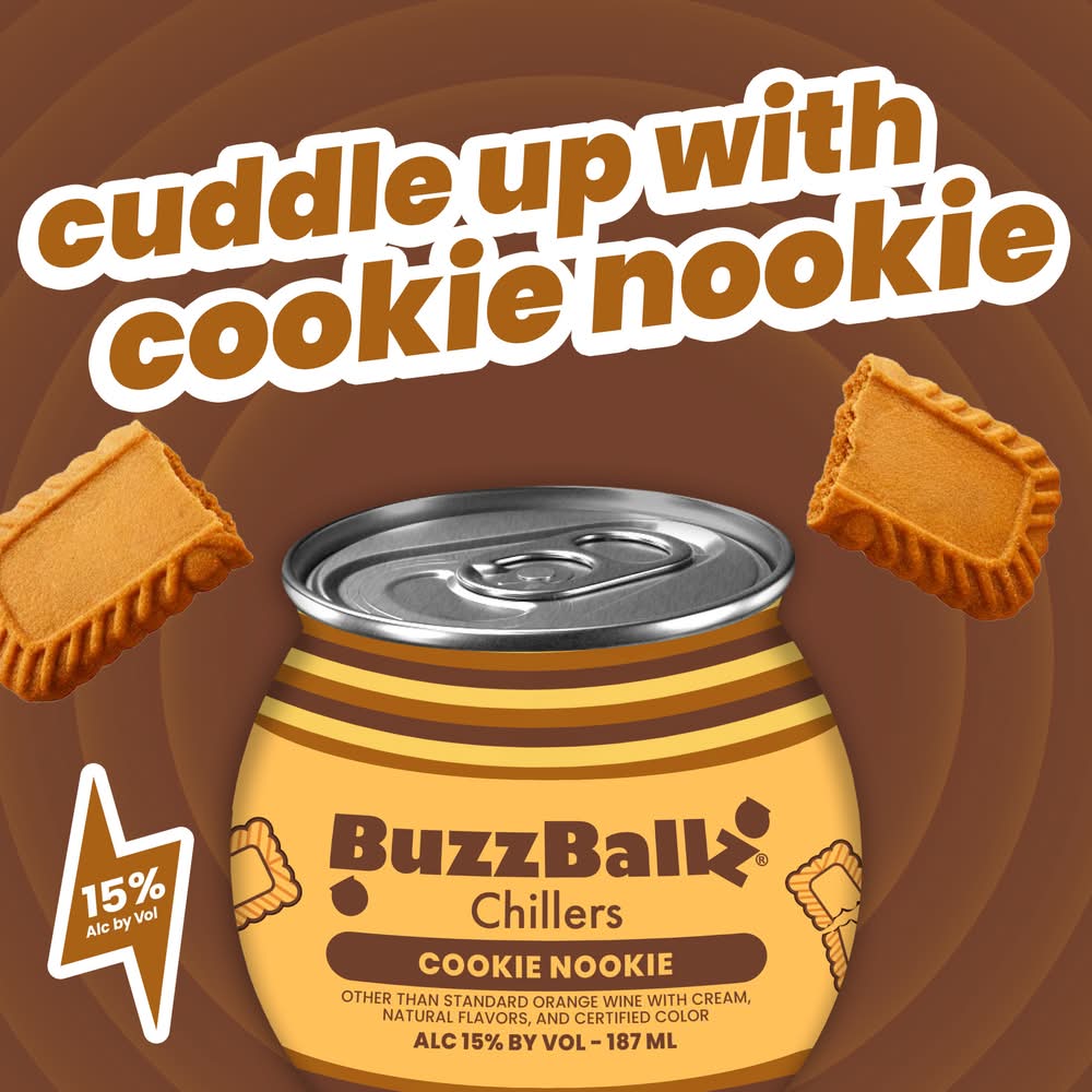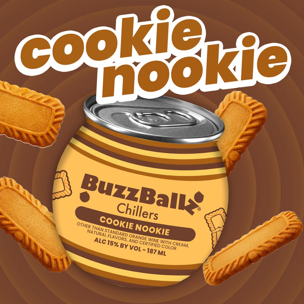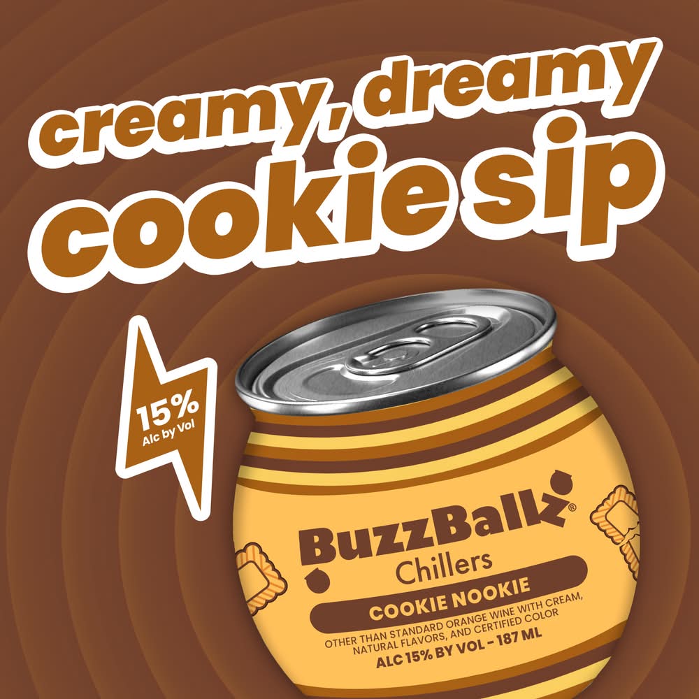 BuzzBallz Cookie Nookie Chillers are the ultimate holiday indulgence. Creamy caramel and luscious flavor will serve up nostalgic memories, like fresh-baked cookies on wintry days. Whether you are naughty or nice, grab BuzzBallz Cookie Nookie and stay sweet all winter long. • Flavor: Cookie nookie • Alcohol by volume: 15%