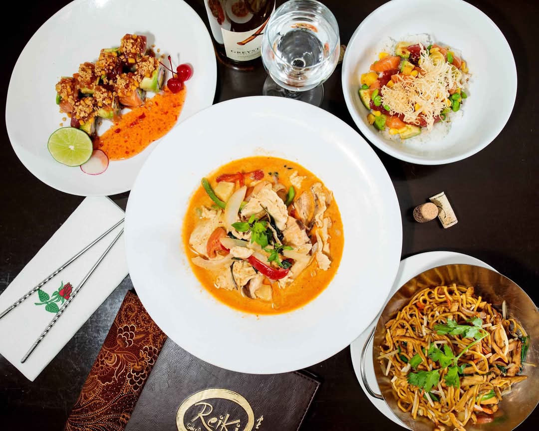 The most ordered items from Reiki Sushi are: Drunken Noodle , Crispy Sesame Chicken, California.
