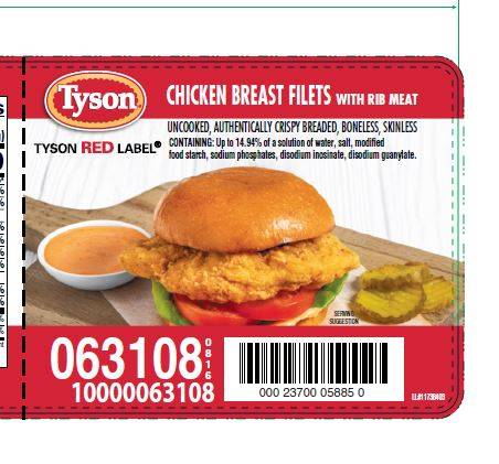 Tyson Chicken Breast Filet Burger (10 lbs)