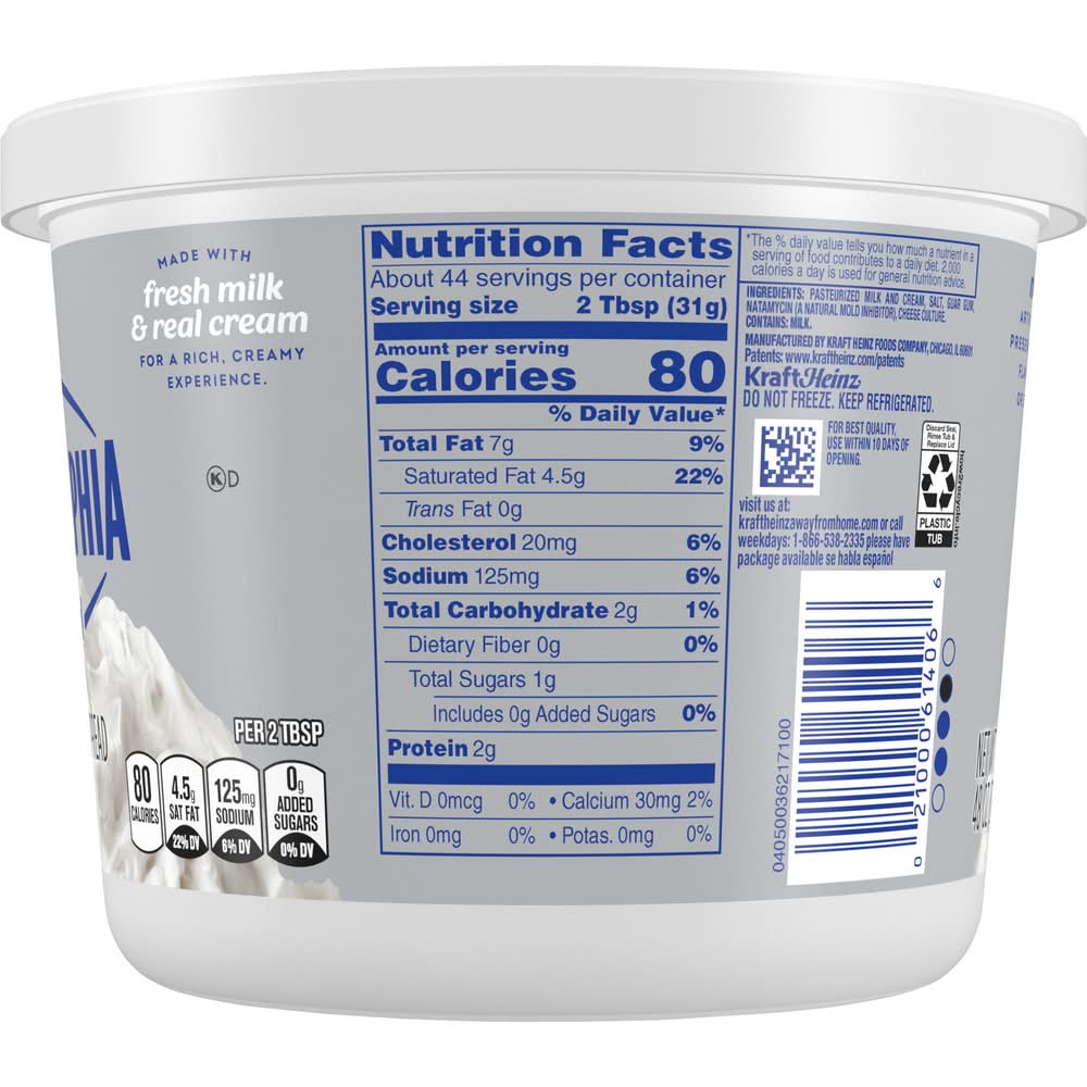Dive into immersive pleasure with this Cream Cheese Spread. Made with real cream and fresh milk for an extra creamy, multi-dimensional taste you can add to any meal. At Philly, we leave out the artificial preservatives, flavors and dyes to ensure a rich, quality flavor. Our original cream cheese spread is easy to spread, making it the perfect choice for adding to your morning bagel, crafting sushi rolls or preparing pinwheel sandwiches. With Philadelphia Cream Cheese Spread, enjoy a rich, creamy experience you don't just taste, you feel. • Size: 1 • Packaging: Reusable