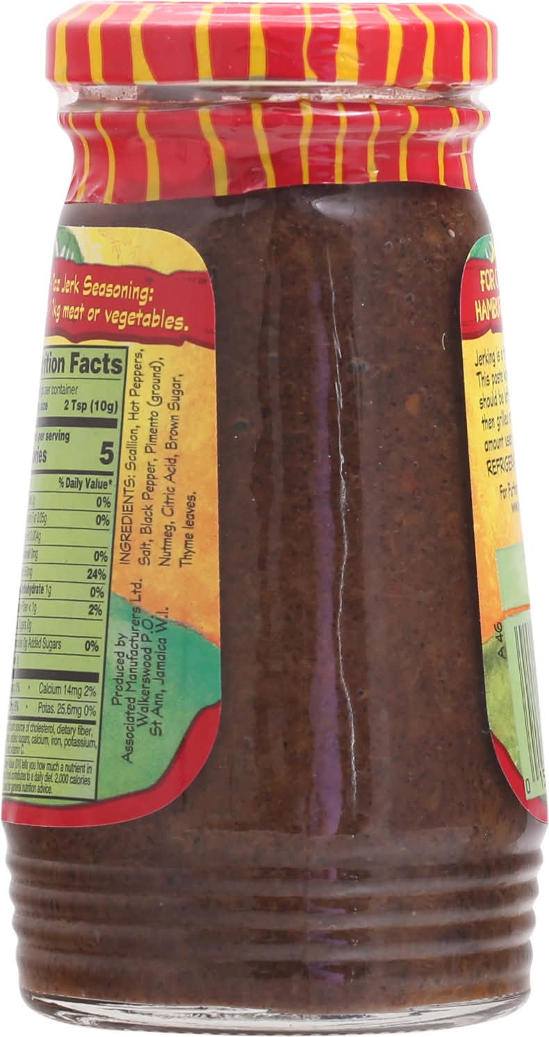 For chicken, pork, fish hamburgers & vegetables. Jerking is a traditional style of barbecuing. This paste when rubbed sparingly into meat should be left overnight for best results, then grilled or roasted slowly. • Flavor: Hot & spicy • Size: 1 • Associated manufacturers ltd., Walkerswood P.O. St Ann, Jamaica, WI