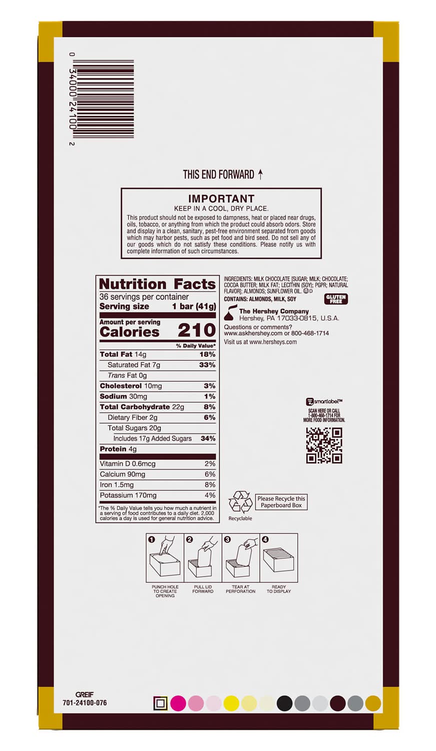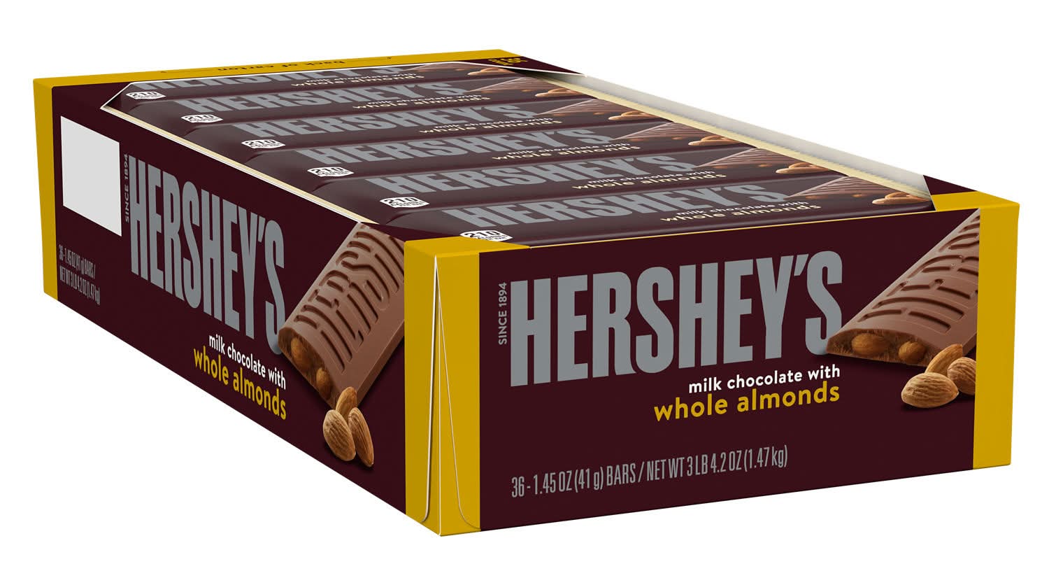 HERSHEY'S Milk Chocolate with Whole Almonds Candy Bars, 1.45 oz (36 Count) • Size: 12 • Number of servings: 36