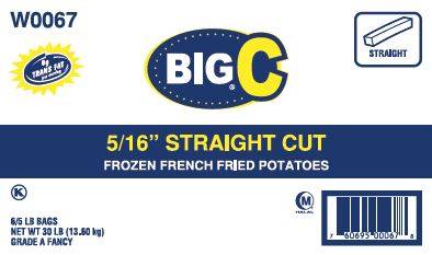Big C Straight Cut Frozen French Fries (30 lbs, 6 ct)
