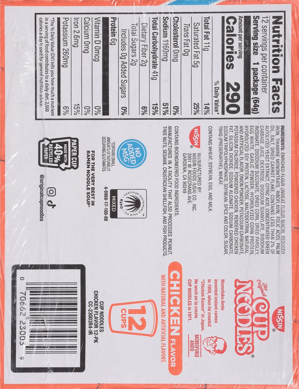 Chicken Flavor Cup Noodles • Flavor: Chicken • Pack size: 12 • Size: 1