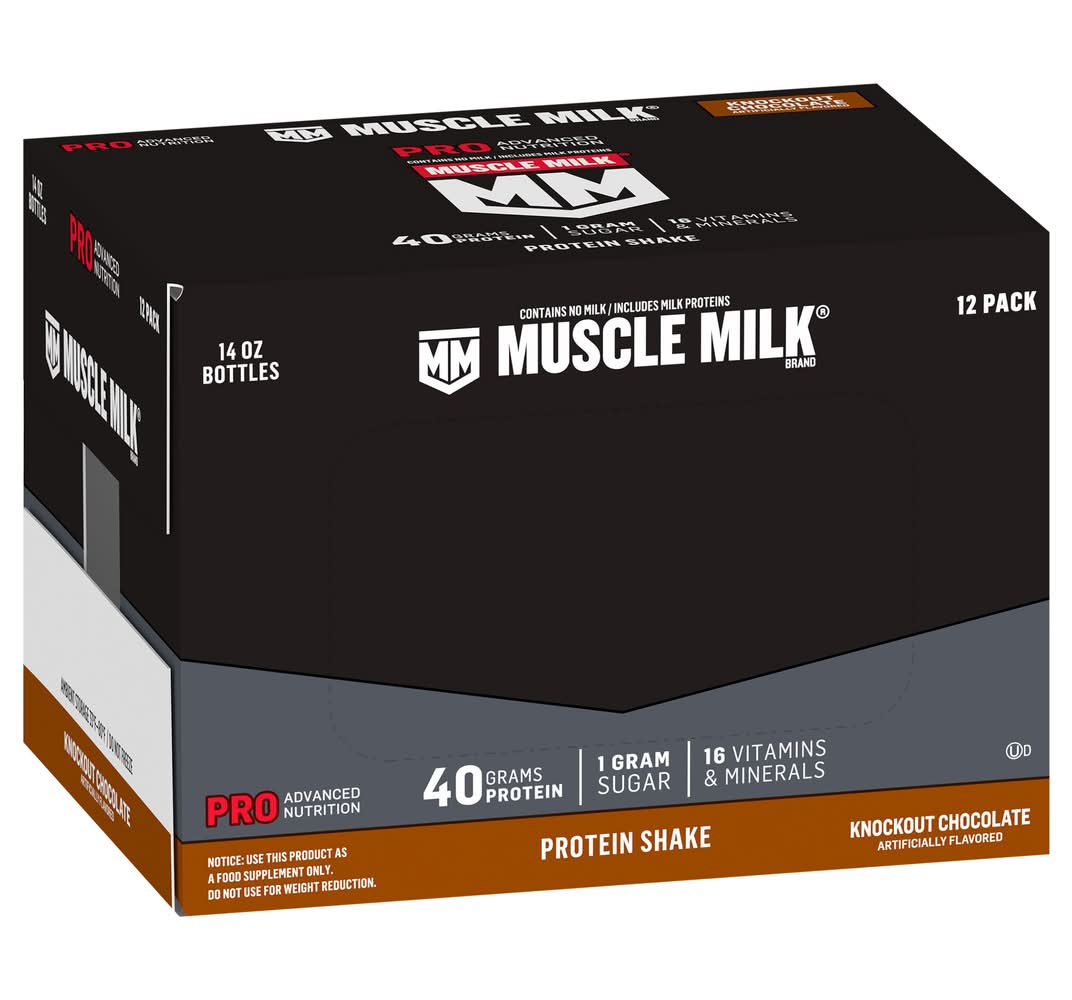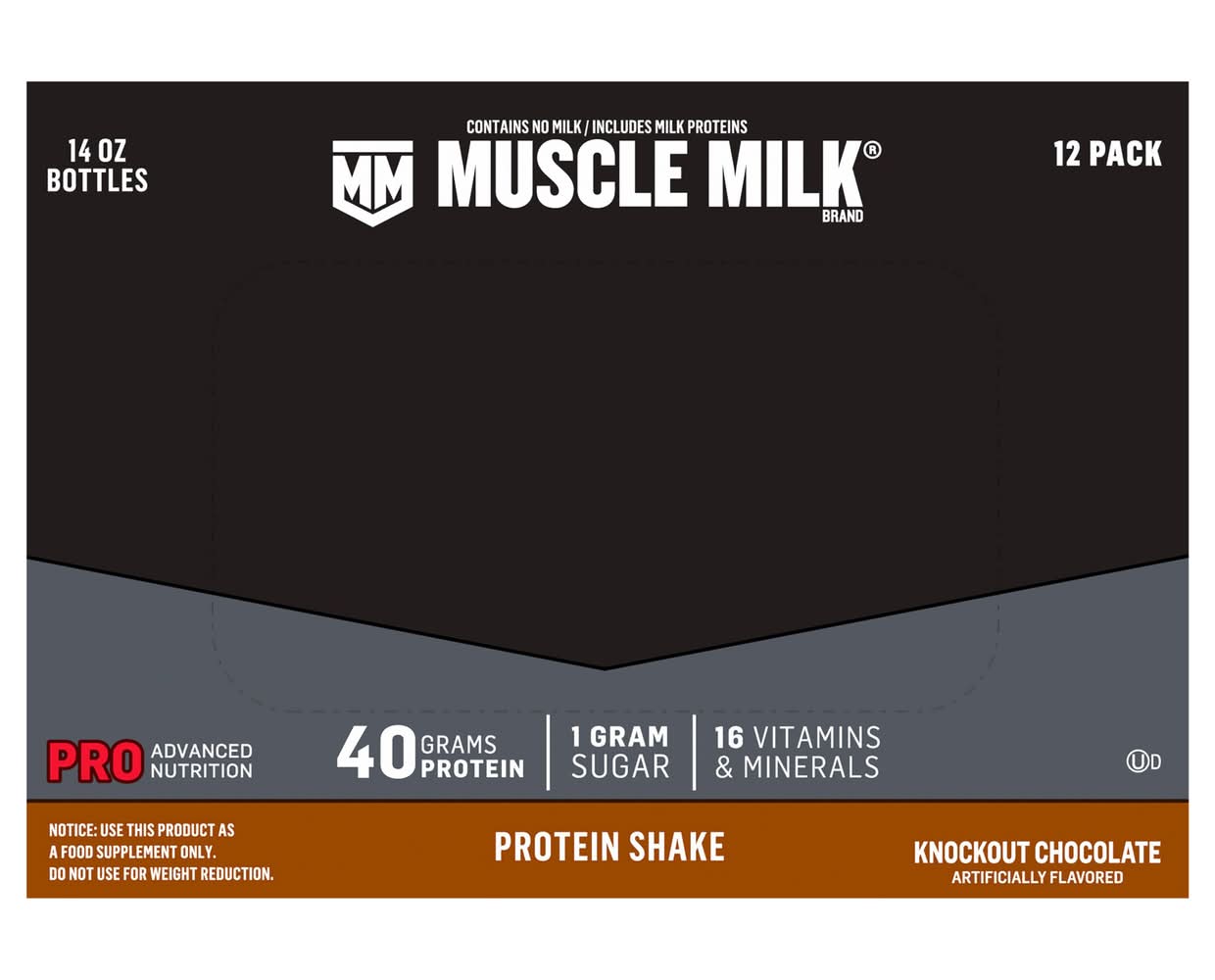 Muscle Milk Pro Series Non-Dairy Protein Shake, Knockout Chocolate (12 x 14 oz)