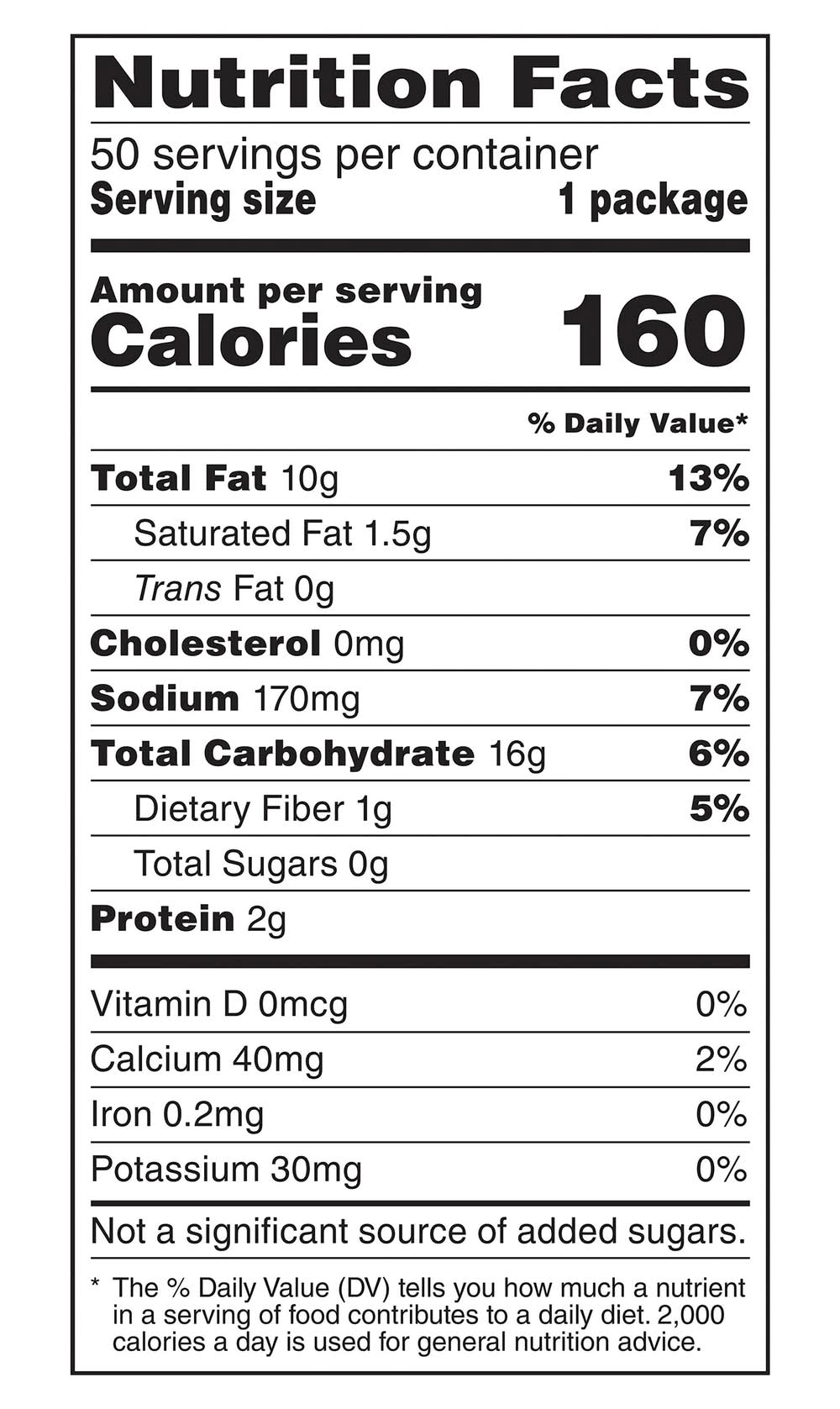 Ingredients: Corn, Vegetable Oil (Corn and/or Canola Oil), and Salt Contains: Corn