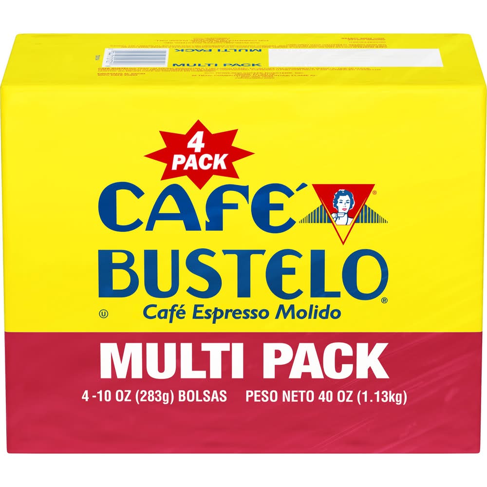 Ground coffee 100% pure coffee. Cafe Bustelo coffee has an irresistible aroma and a bold taste. It is a deliciously versatile coffee that can be prepared using your preferred method: drip brewed, cappuccino, espresso or cold with ice to satisfy all tastes. The best coffee is enjoyed with company! • Pack size: 4 • Size: 1