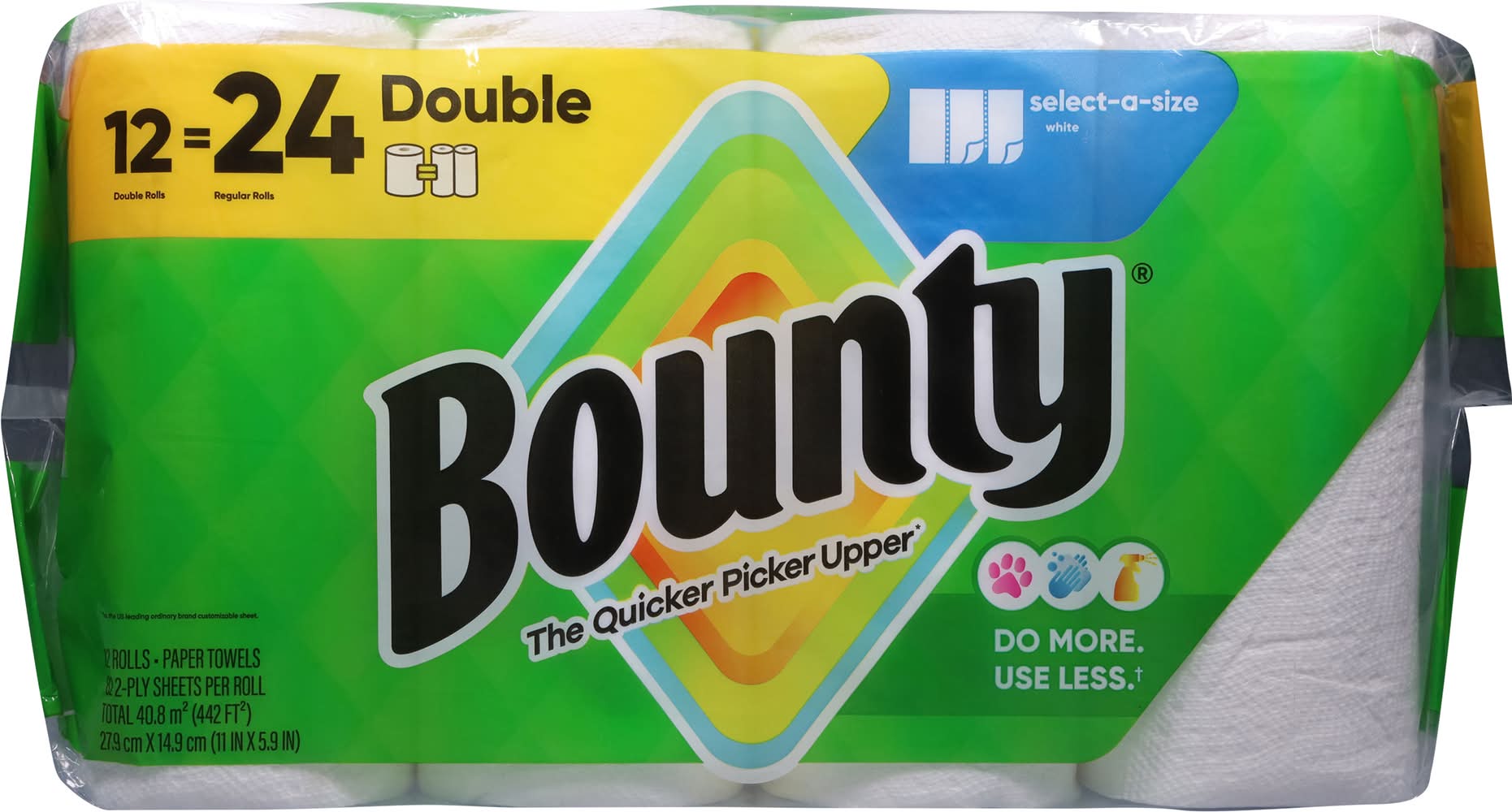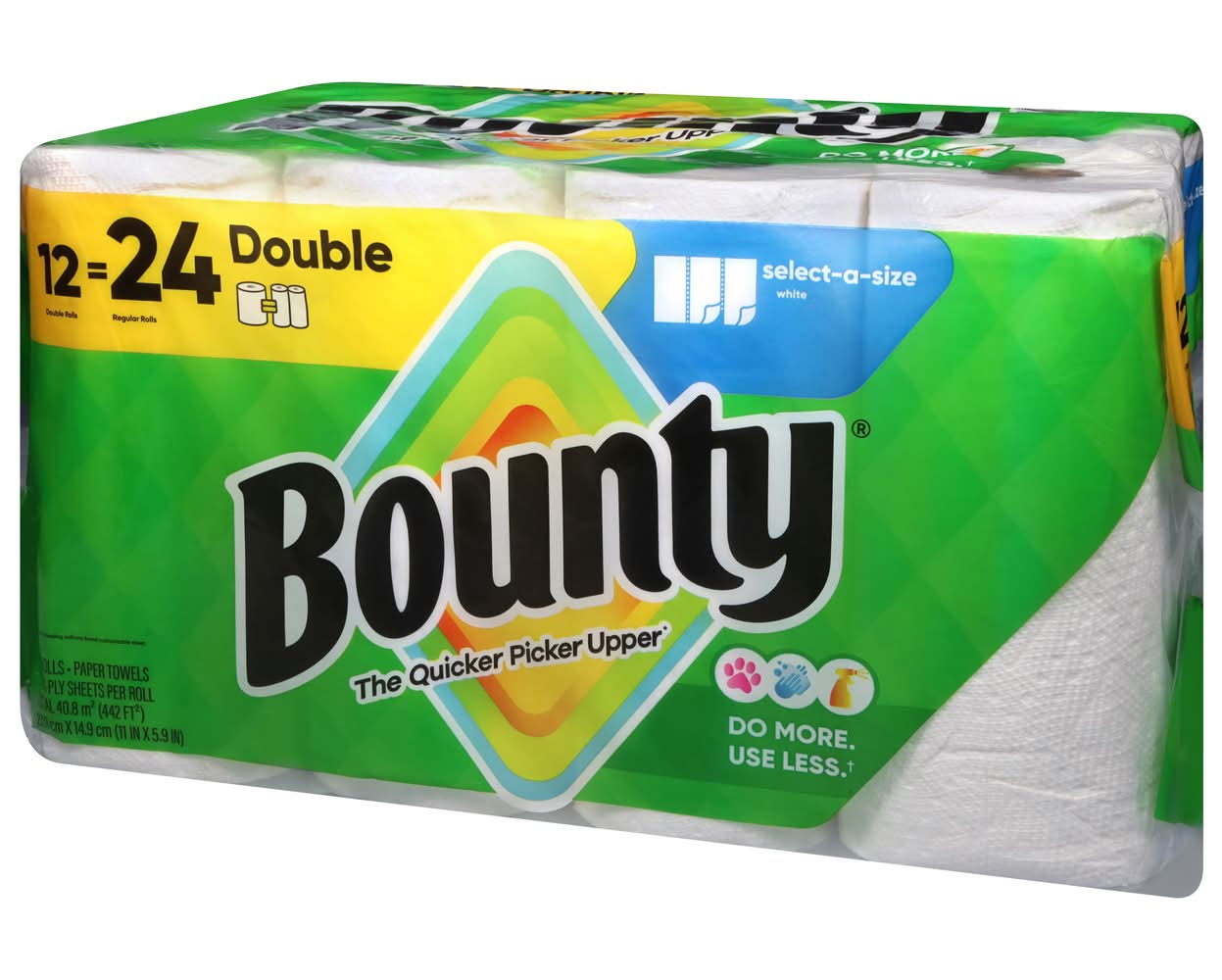 Paper Towels are available in two sheet sizes, Full Sheet and Select-A-Size, so you can choose which option works best for you. Select-A-Size towels are versatile, so you can choose your sheet size depending on your mess. And if you’re buying the bigger packs, you’ll always have on hand. has a variety of pack and roll sizes to fit your needs. products are proudly made with American jobs and we’re fully committed to creating solutions for a sustainable future. Across all our products, we consider the impact on people, forests, and the world. That’s why for every tree we use, at least two are regrown so you can conveniently and confidently clean messes in the kitchen and around the house knowing Paper Towels is helping to keep forests greener. always has your back in and out of the kitchen so whether it’s juice on the counter or ice cream on the table, we make sure spills won’t stand a chance.leading ordinary brand Size: 1