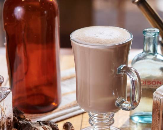 steamed oat milk, lion's mane and chaga mushroom coffee