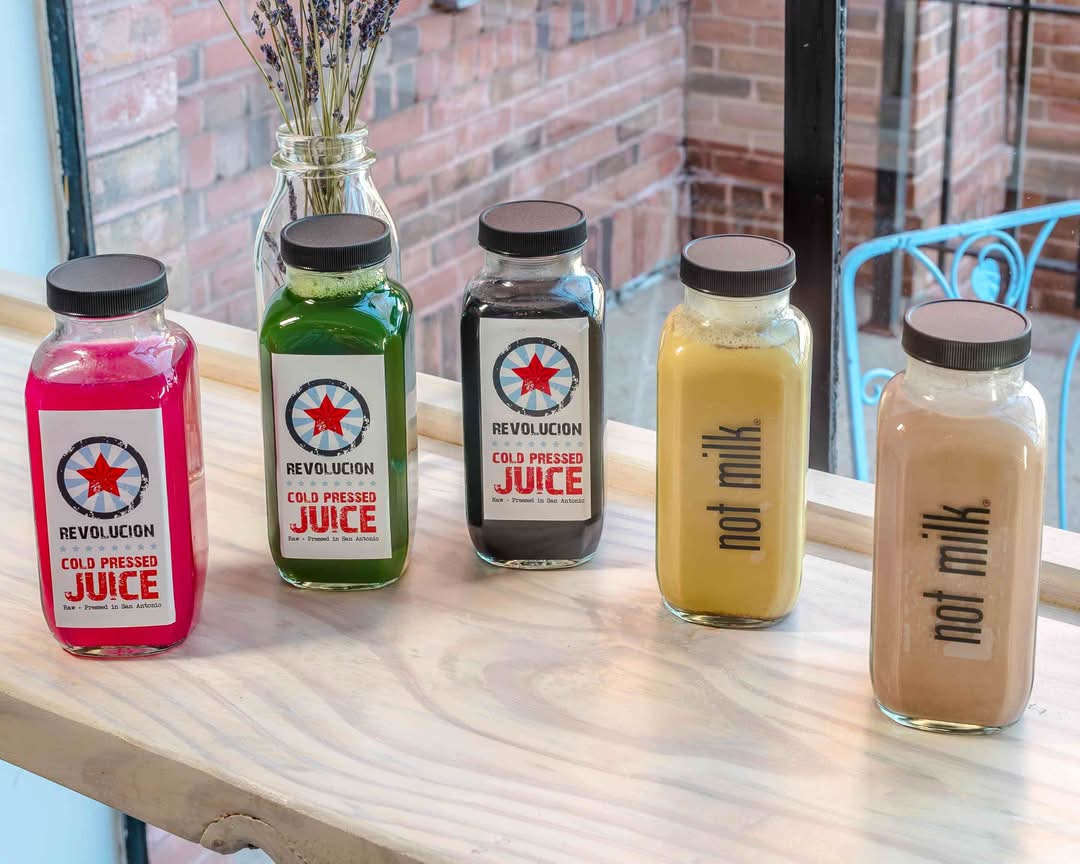 What is the address of Revolucion Coffee + Juice in San Antonio?