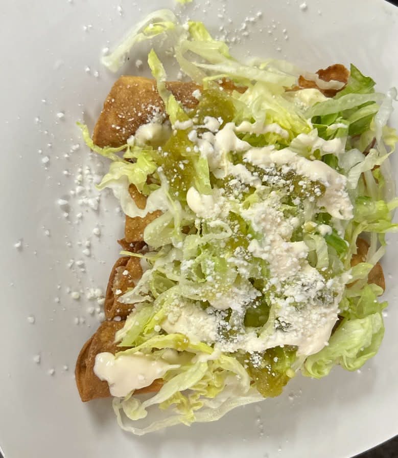 F rying Cheese Rolled Tacos with Salsa Taquitos Dorados de queso