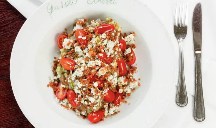 Iceberg wedge, gorgonzola. Crispy prosciutto, tomatoes balsamic vinaigrette dressing.