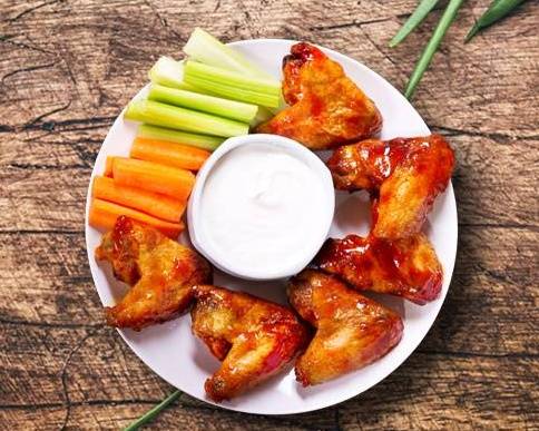Crispy chicken wings tossed in our classic American buffalo sauce. Served with your choice of dipping sauce.