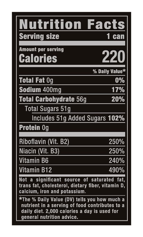 Ingredients: Carbonated & Nitrogenated Water Suga Glucose Natural & Artificial Flavors Citric Acid Tauri Sodium Citrate Panax Ginseng Flavor, Maltodextr Potassium Sorbate (Preservative) Caffeine Whey Prot (Milk) Sodium Benzoate (Preservative), Niacinami (Vit. B3) L-Carnitine L-Tartrate Sucralose Inosito Pyridoxine Hydrochloride (Vit. B6) Riboflavin (Vit. B Blue 1, Cyanocobalamin (Vit.B12). Contains: Milk Contains 160mg of caffeine