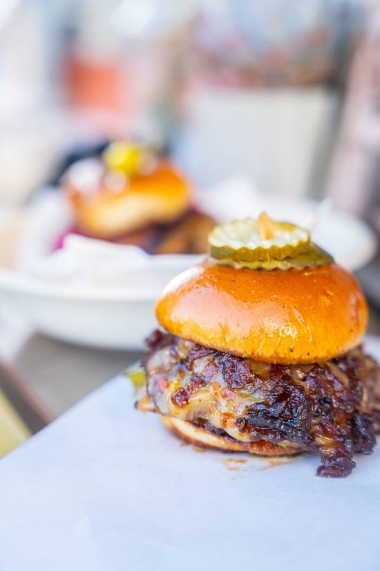 Wagyu slider + onion confit + bacon whiskey sauce + jack cheese + baby arugula + Kewpie mayo