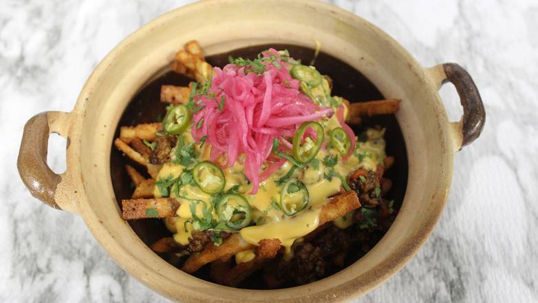 Low carb wagyu chilly on a bed of fatty head keto fries