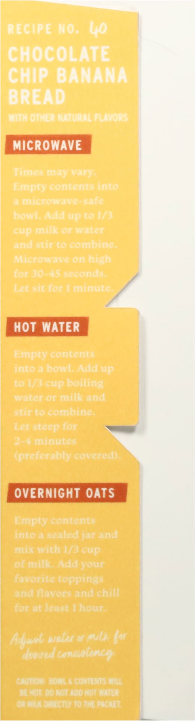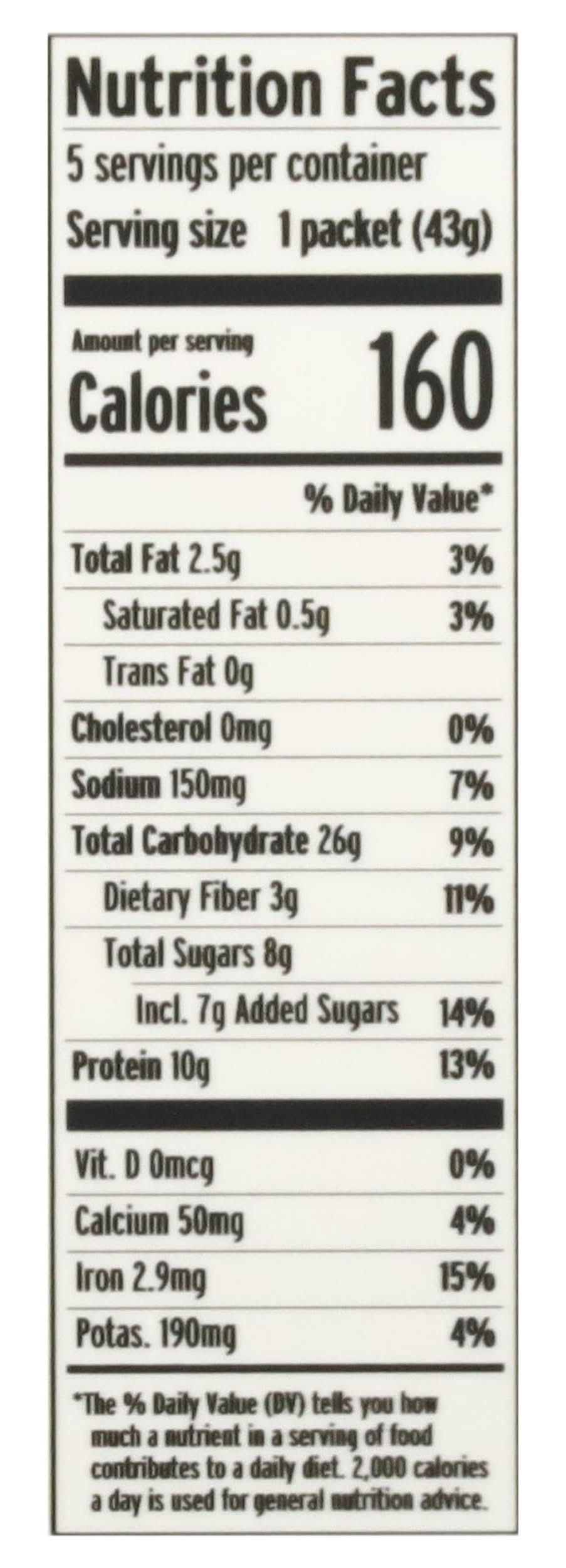 Protein Chocolate Chip Banana Bread Instant Oatmeal • Flavor: Chocolate chip banana bread • Pack size: 5 • Number of servings: 5