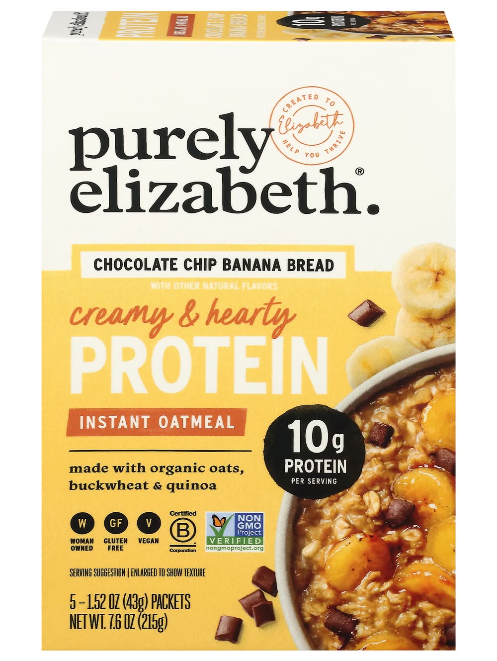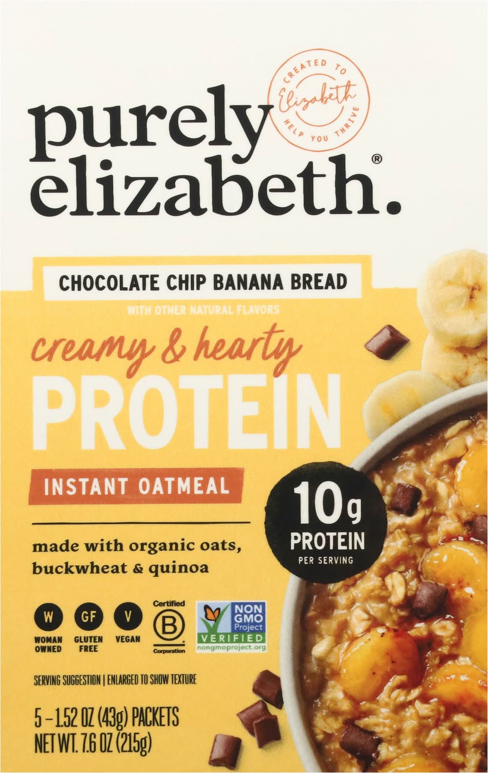 Purely Elizabeth Instant Protein Oatmeal, Chocolate Chip Banana Bread (5 x 1.66 oz)