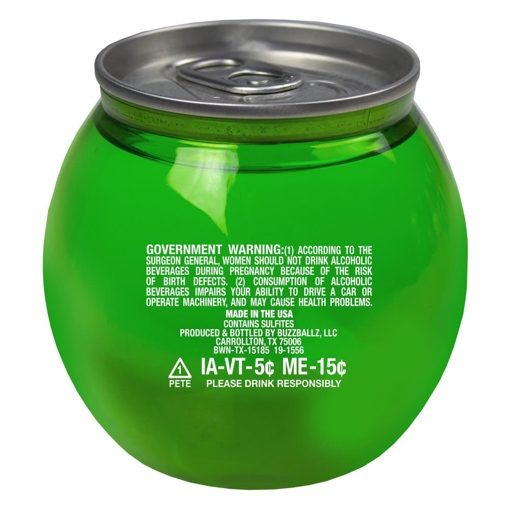 Orange wine with apple & lemon juices & natural flavors artificially colored with FD&C yellow 5 & Blue 1. Please drink responsibly. Have a ball! Women owned. Go Texan. • Alcohol by volume: 15% • Packaging: Reusable