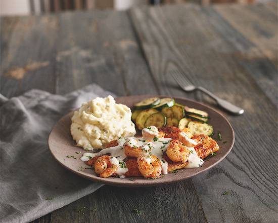 Mild and flaky tilapia, Creole-seasoned then topped with sautéed shrimp and Parmesan cream. Served with your choice of two sides.
