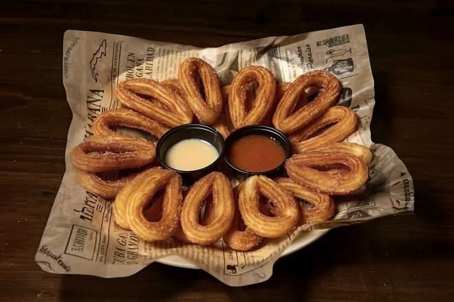 Crispy Pastry Dough Tossed in Cinnamon Sugar, Served with condensed Milk and Guava Sauce for Dipping