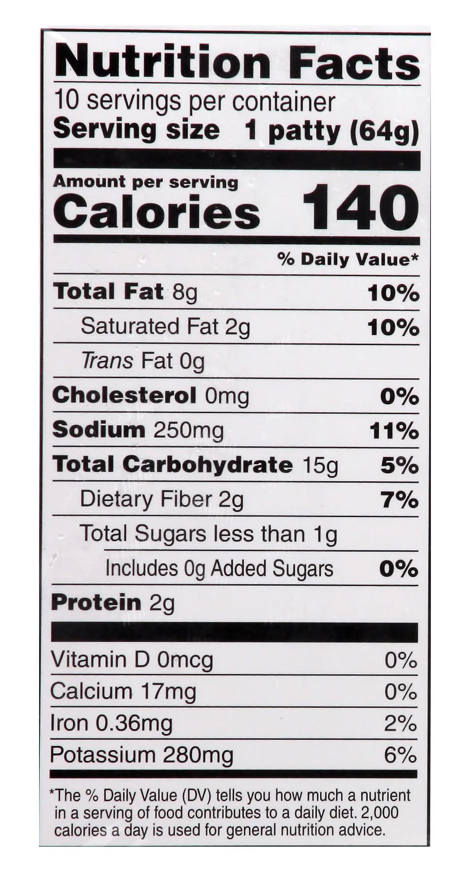 Directions for use: For food safety. Product must be cooked thoroughly before eating. Keep Frozen - do not thaw Red and follow the instructions as product must reach a minimum of 165 degrees F (74 degrees C) internal temperature as measured by a food thermometer at several spots. Conventional Oven: Preheat conventional oven to 400 degrees F. Arrange frozen hash brown patties in a single layer on an 11 in x 17 in baking sheet lined with aluminum foil or parchment paper. Bake according to the chat below; turning patties over halfway through the baking time. Amount 5 patties: 18-20 minutes; time. Amount 10 patties; 22-24 minutes; time. Keep Frozen. Storage recommendation: Keep Frozen.