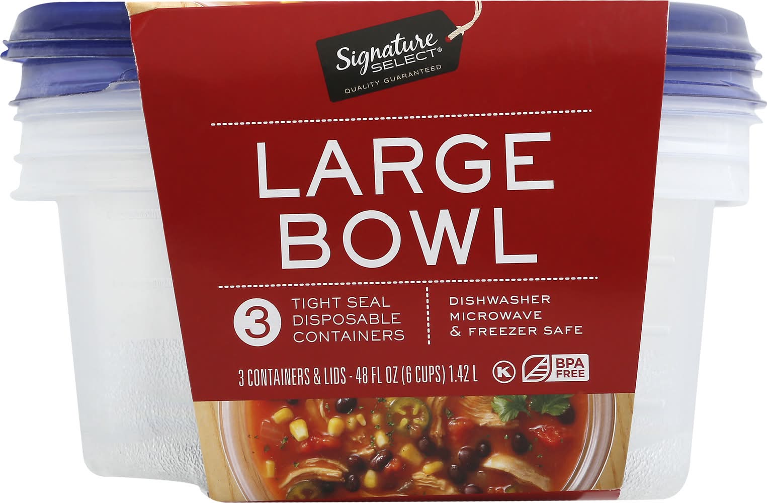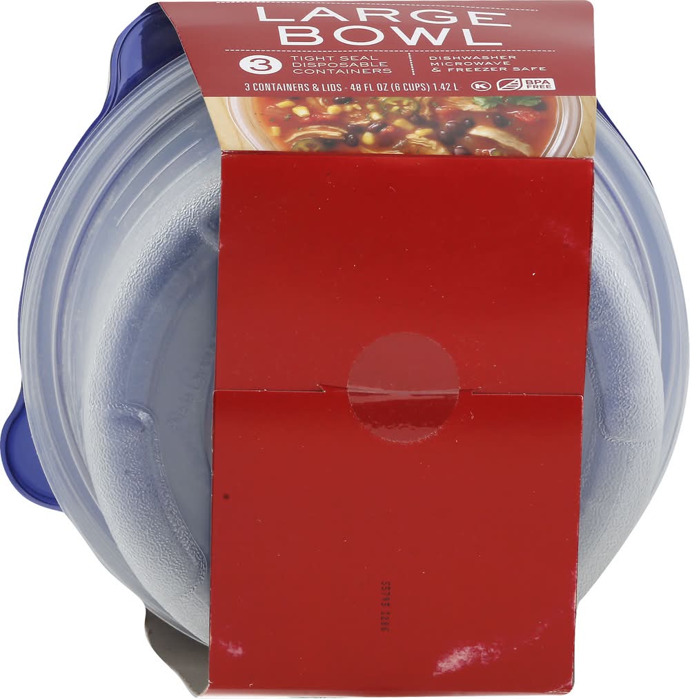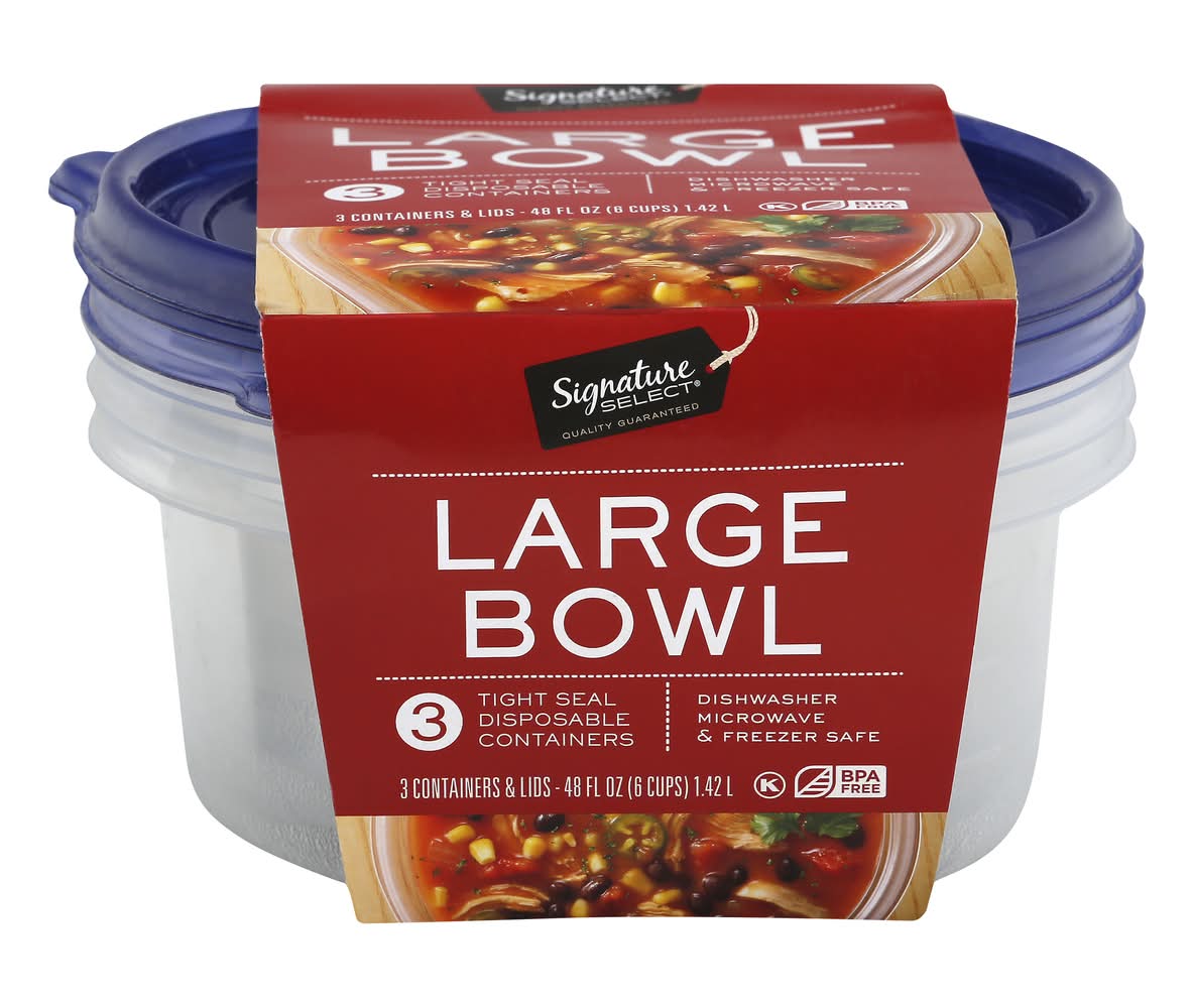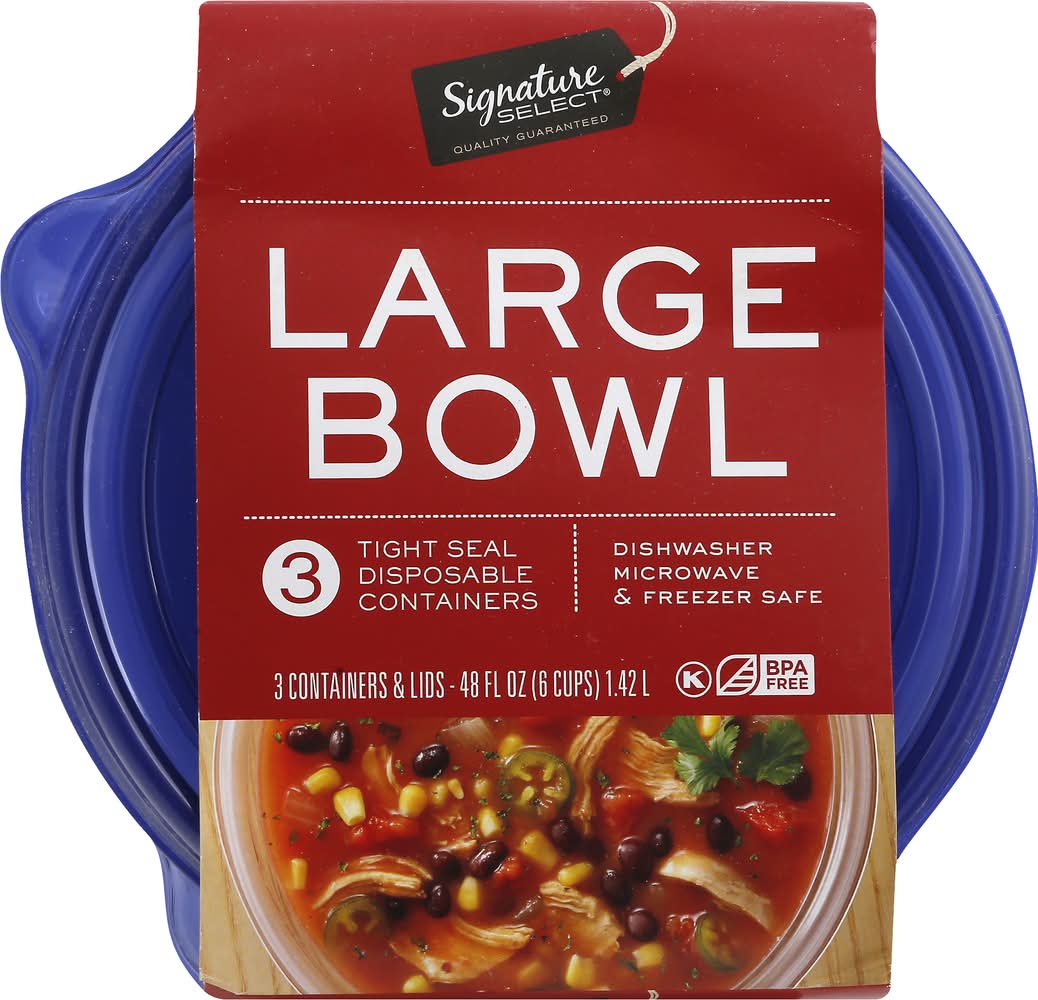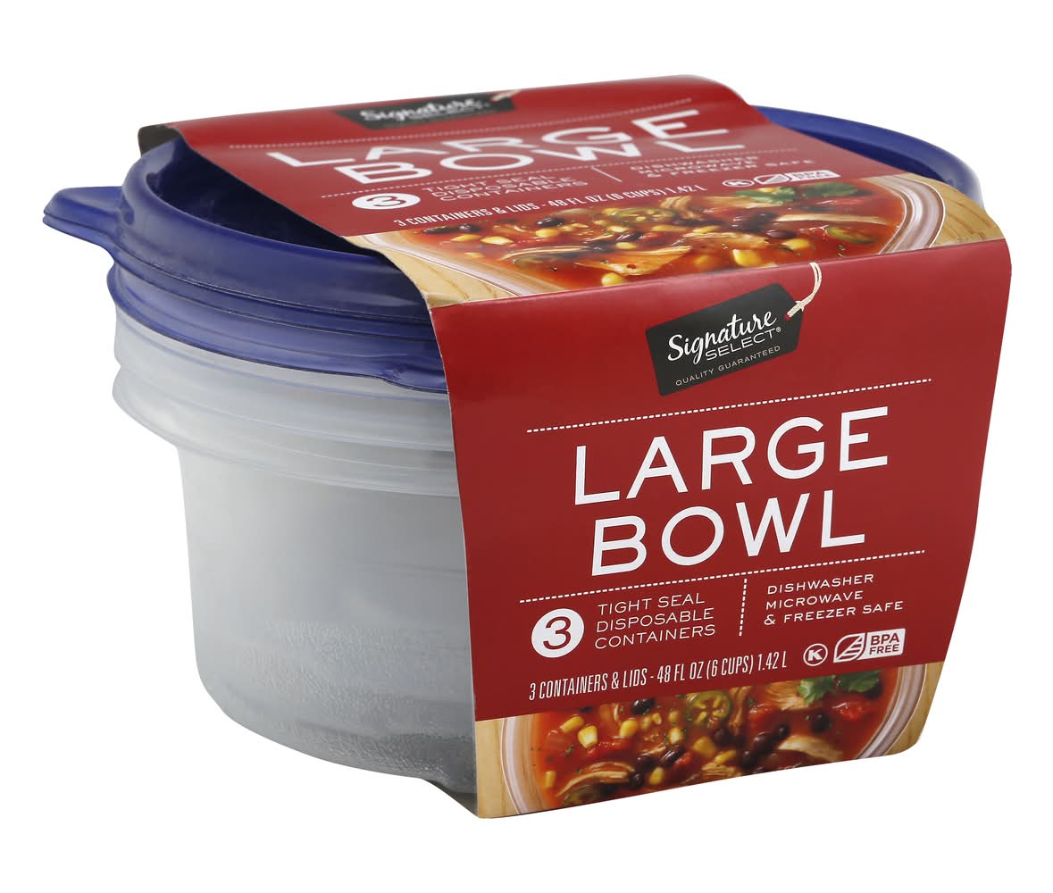 Signature Select Disposable Bowl Containers With Lids, L (3 ct)