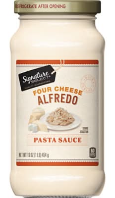 Ingredients: Water, Soybean Oil and/or Canola Oil, Cream, Modified Corn Starch, Parmesan Cheese (Milk, Cheese Cultures, Salt, Enzymes), Modified Egg Yolk (Egg Yolks, Salt, Enzyme, Dairy Product Solids, Salt Romano Cheese (Cow’s Milk, Cheese Cultures, Salt, Enzymes), Ricotta Cheese (Whey, Milk, Bacterial Culture, Salt, Citric Acid), Provolone Cheese (Milk, Sal Enzymes, Bacterial, Culture, Roasted & Garlic Powder, Xanthan Gum, Black Pepper, Lactic Acid. Contains: Milk, Eggs, Soybeans