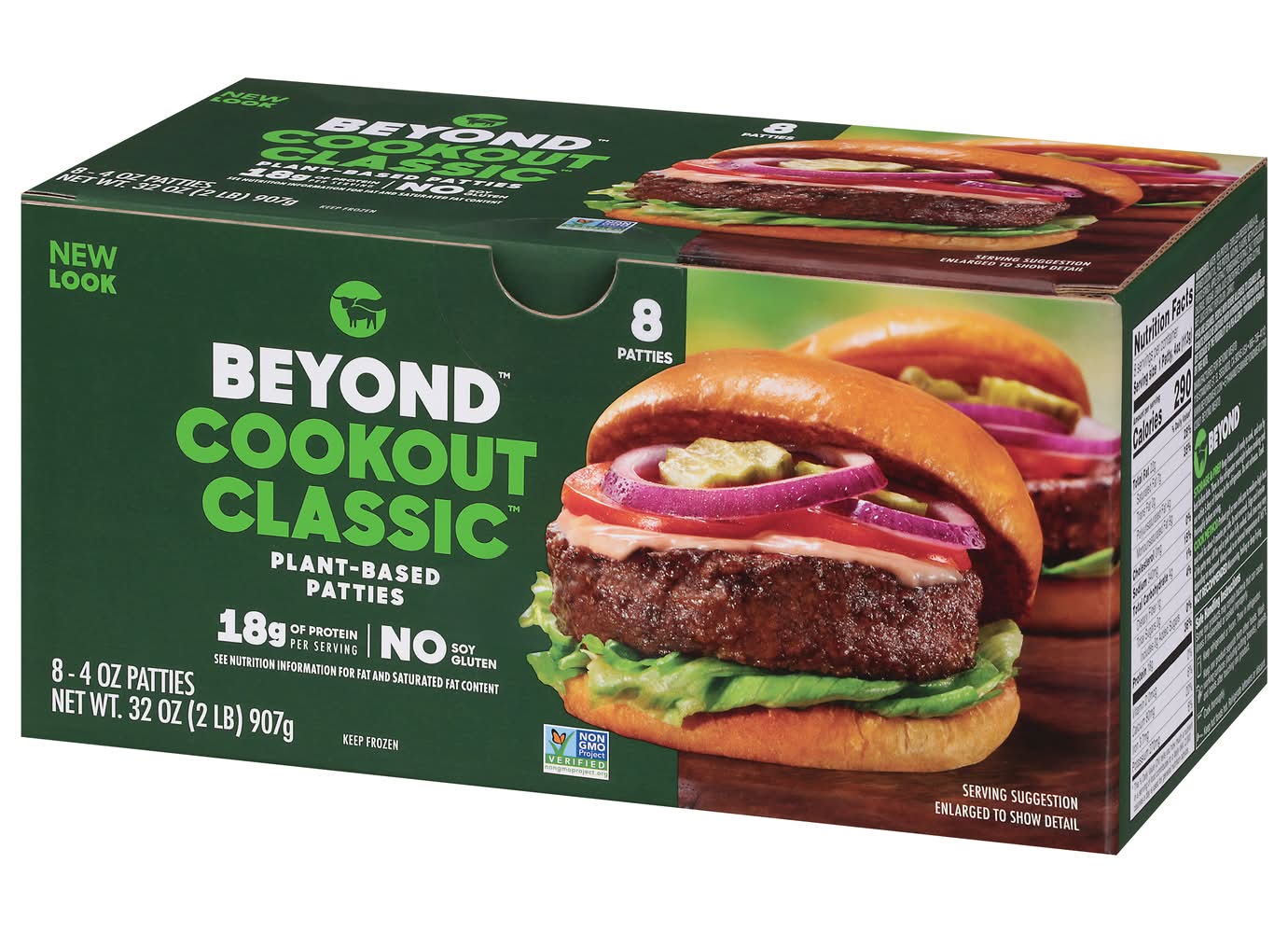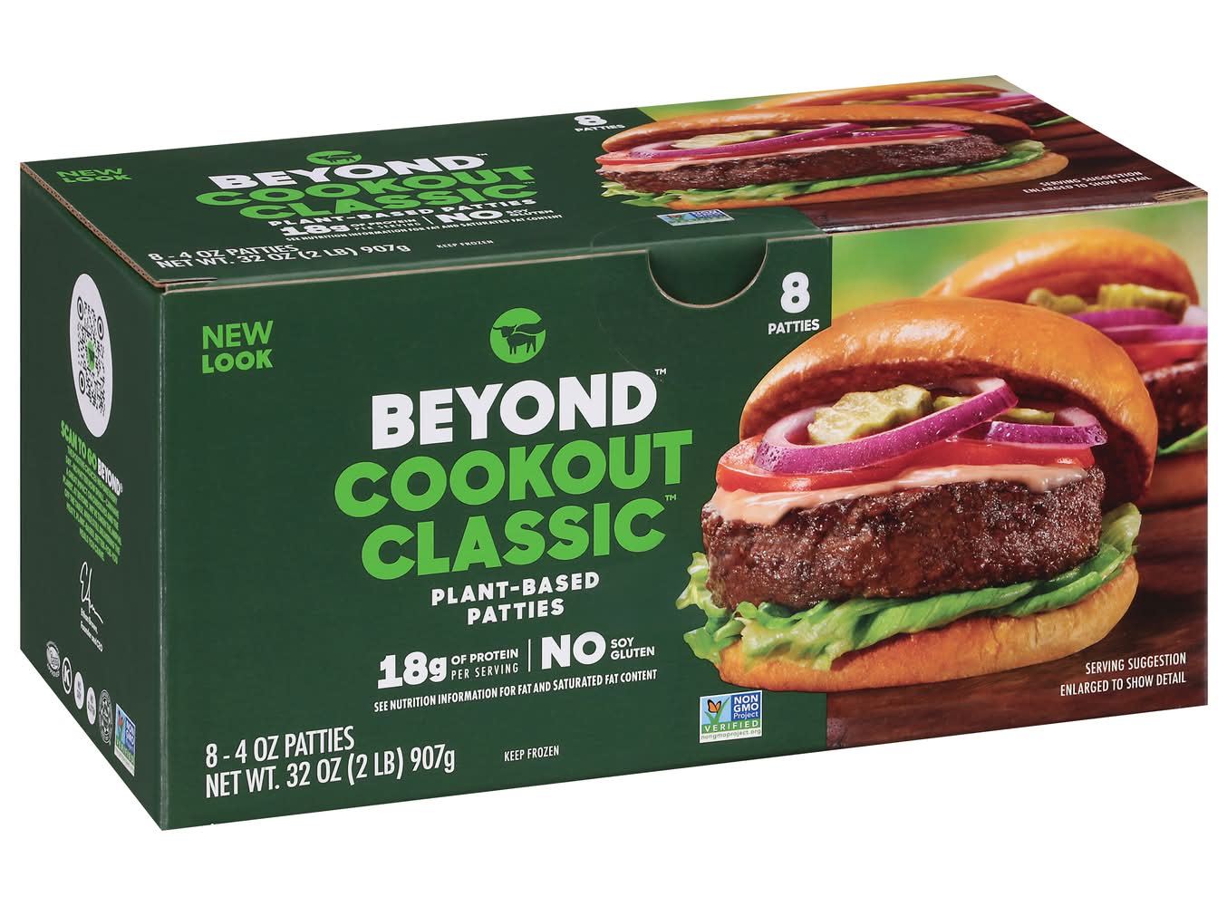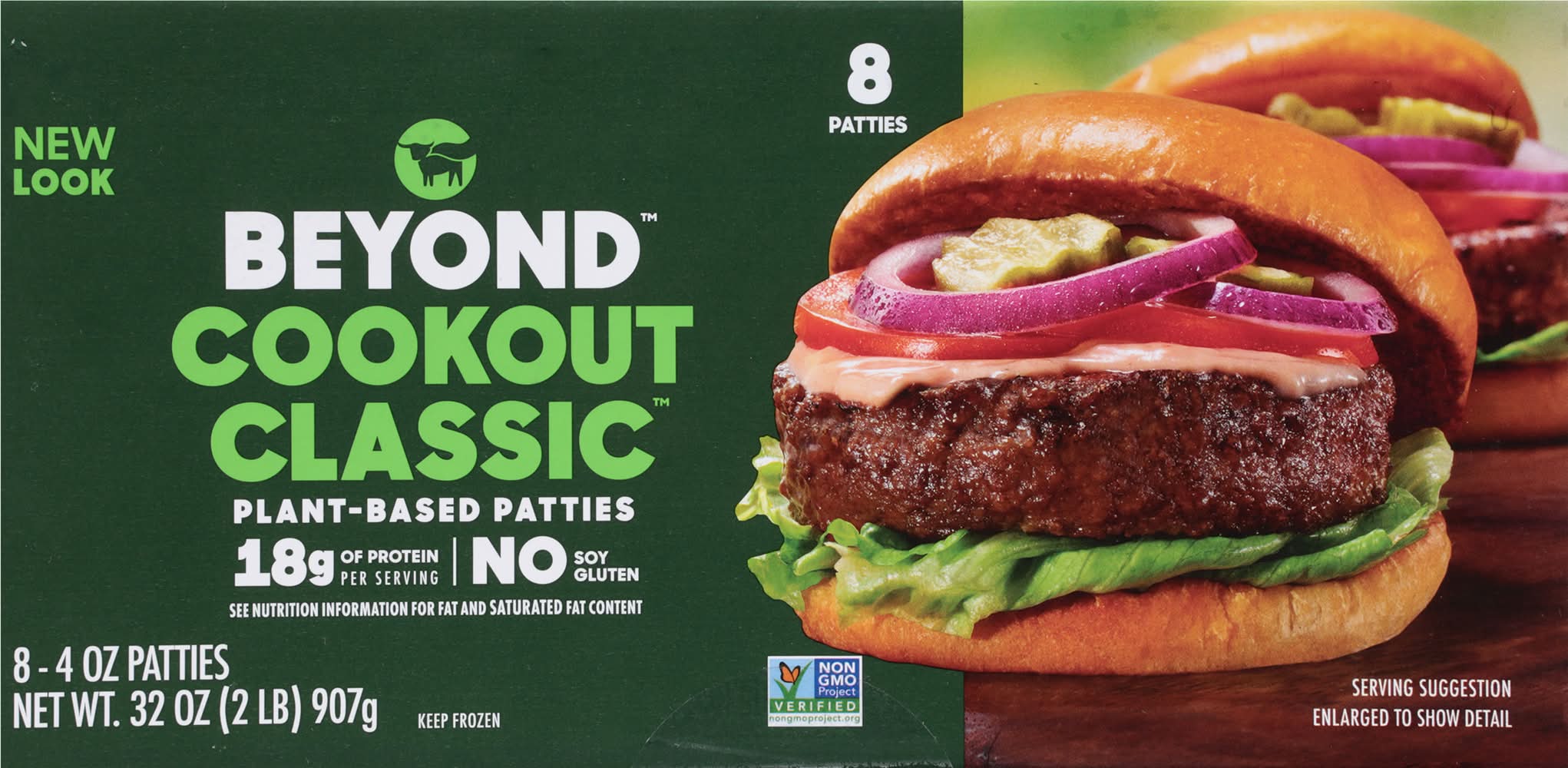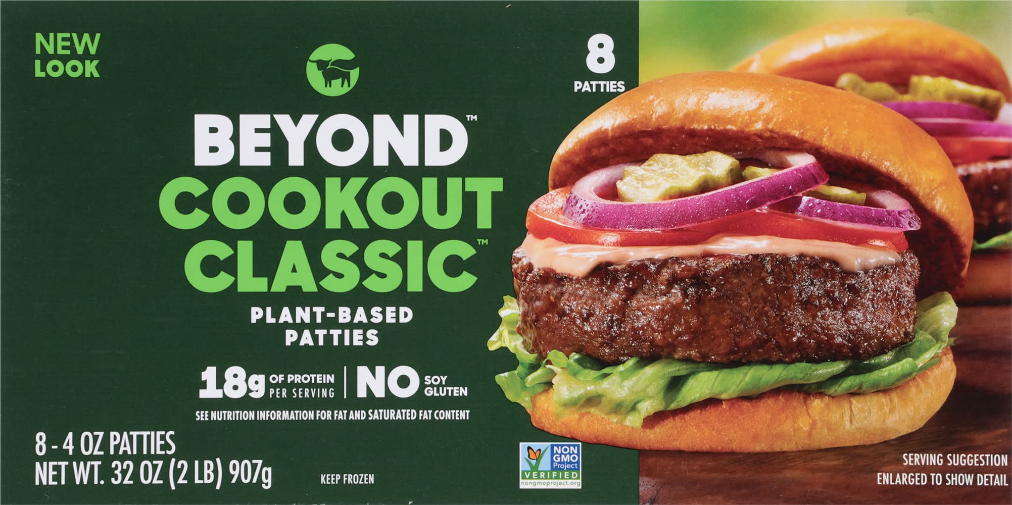 18 g of protein per serving. No gluten. Vegetarian Society: Approved: Vegan. No gluten. Halal. See nutrition information for fat and saturated fat content. No soy. Non-GMO Project verified. Beyond: The positive choices we make every day - no matter how small - can have a great impact on ourselves and the planet. At Beyond, we've taken the animal off the table, while still delivering the meaty, plant-based, better-for-you meals you crave. - Ethan Brown, Founder and CEO. • Pack size: 8 • Packaging: Reusable