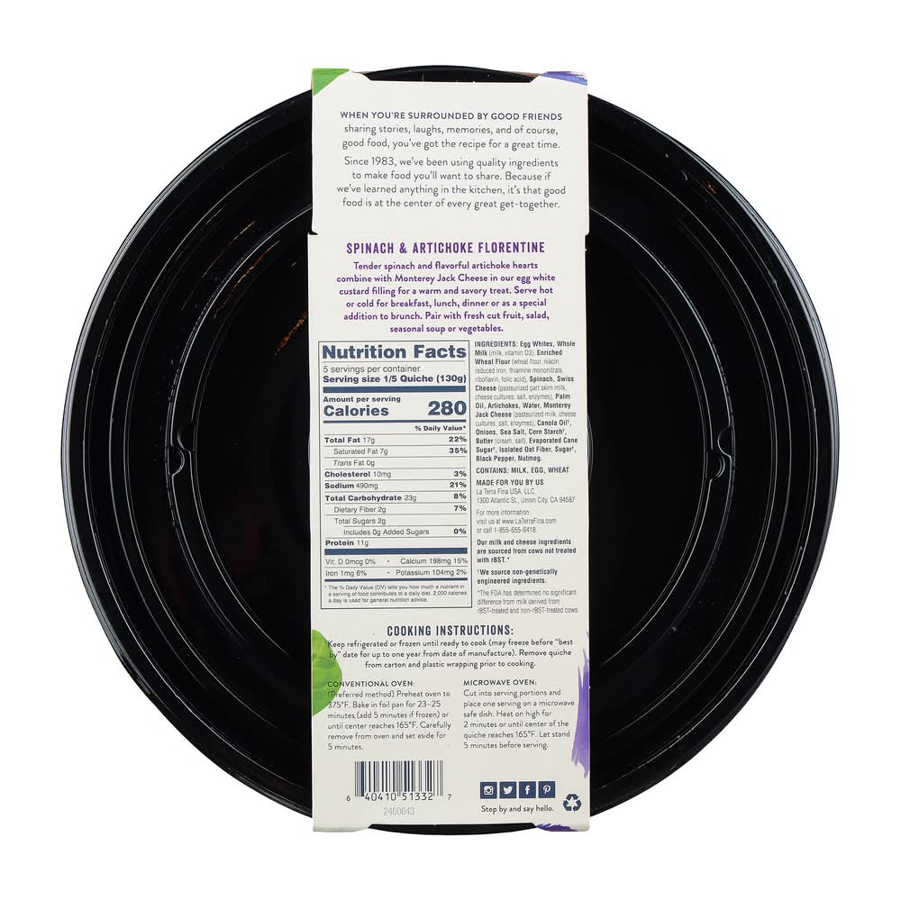 La Terra Fina Egg Whites Quiche, Spinach & Artichoke (23 oz)