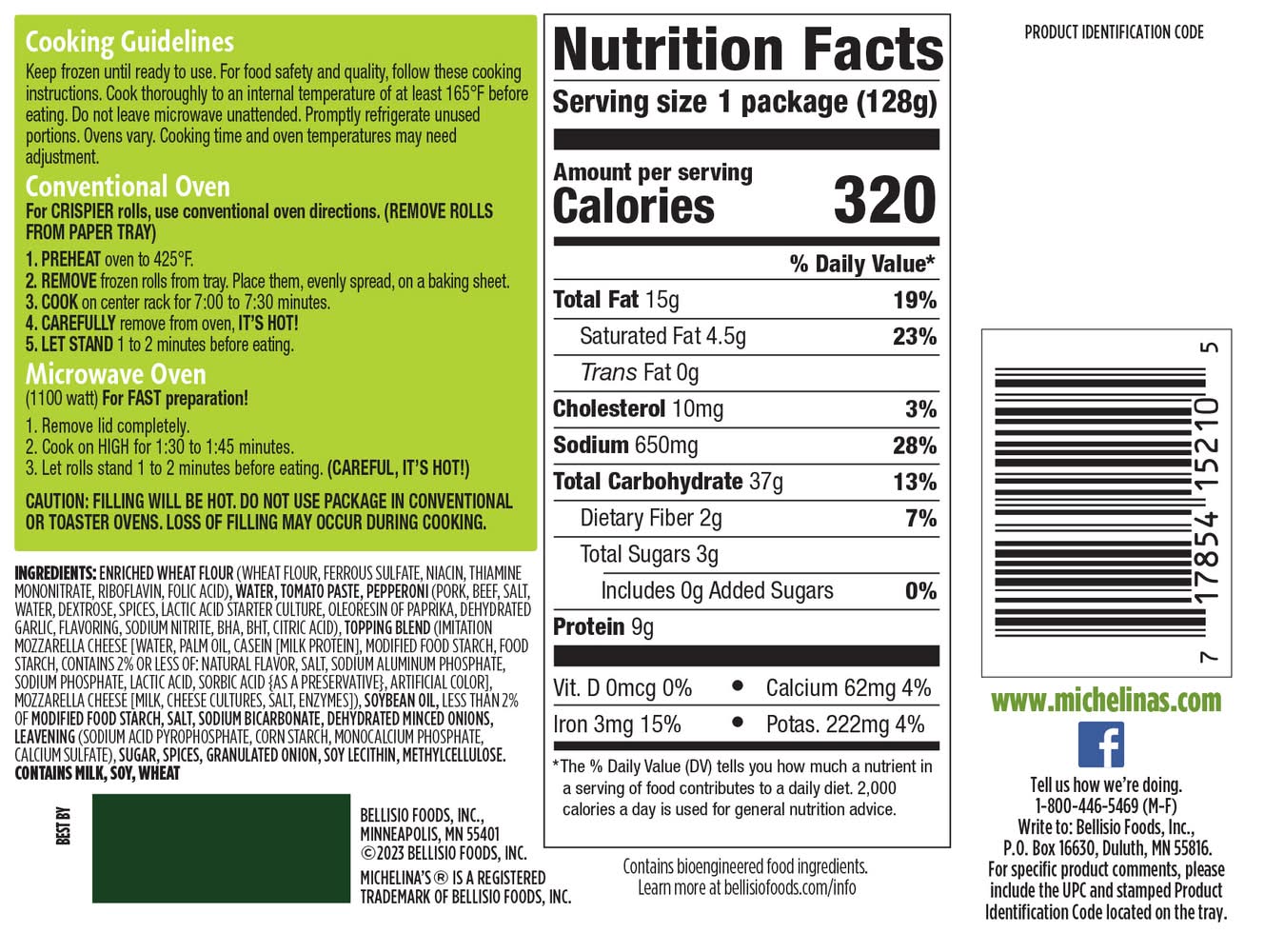 Michelina's Pepperoni Pizza Snack Rolls Meal 4.5oz (Frozen Dinner) Bellisio Foods, Inc., Duluth,MN,55802