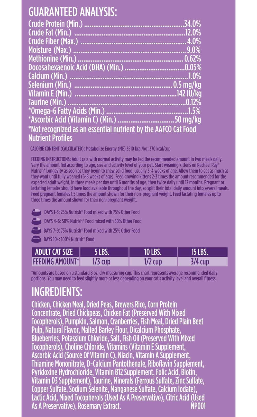 Nutrish Longevity Chicken Chickpea & Salmon Recipe Cat Food (3 lbs)